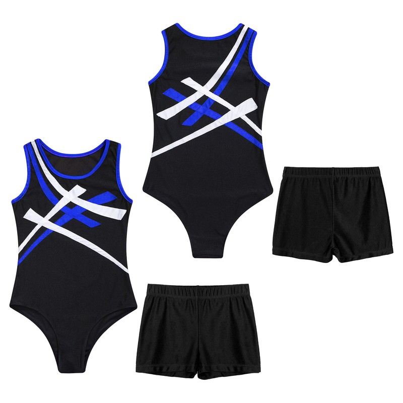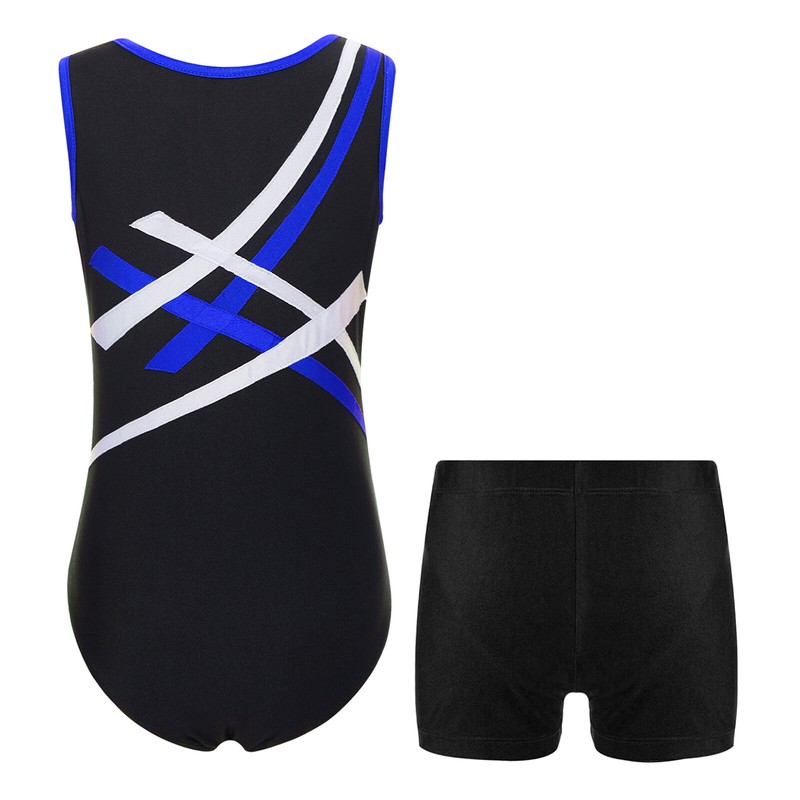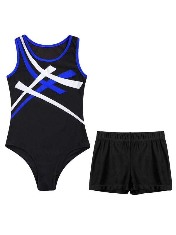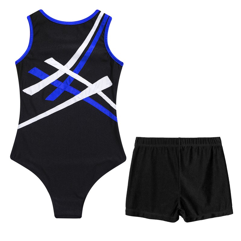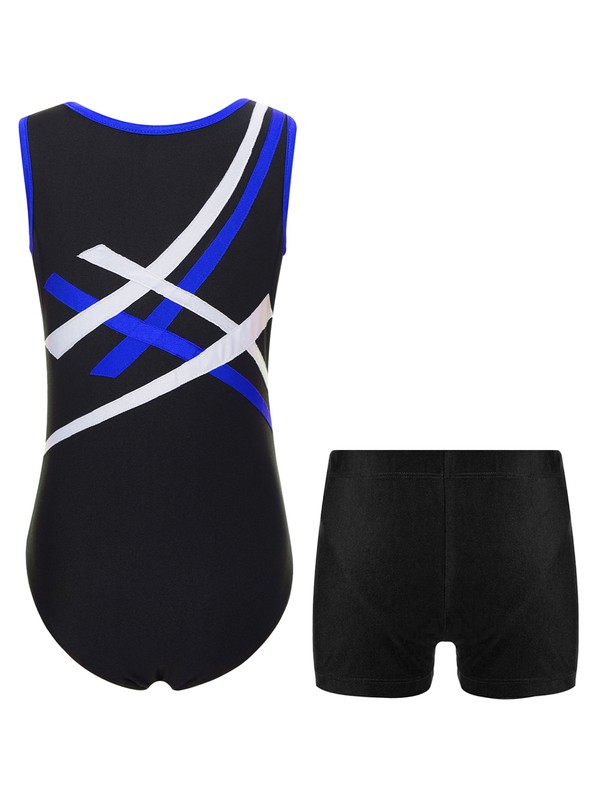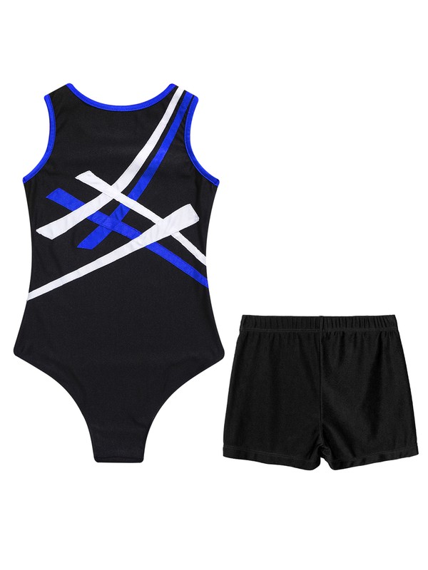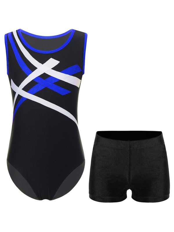 Round neck sleeveless gymnastics leotard for boys, contrast color and patchwork design makes your child look stylish and energetic.