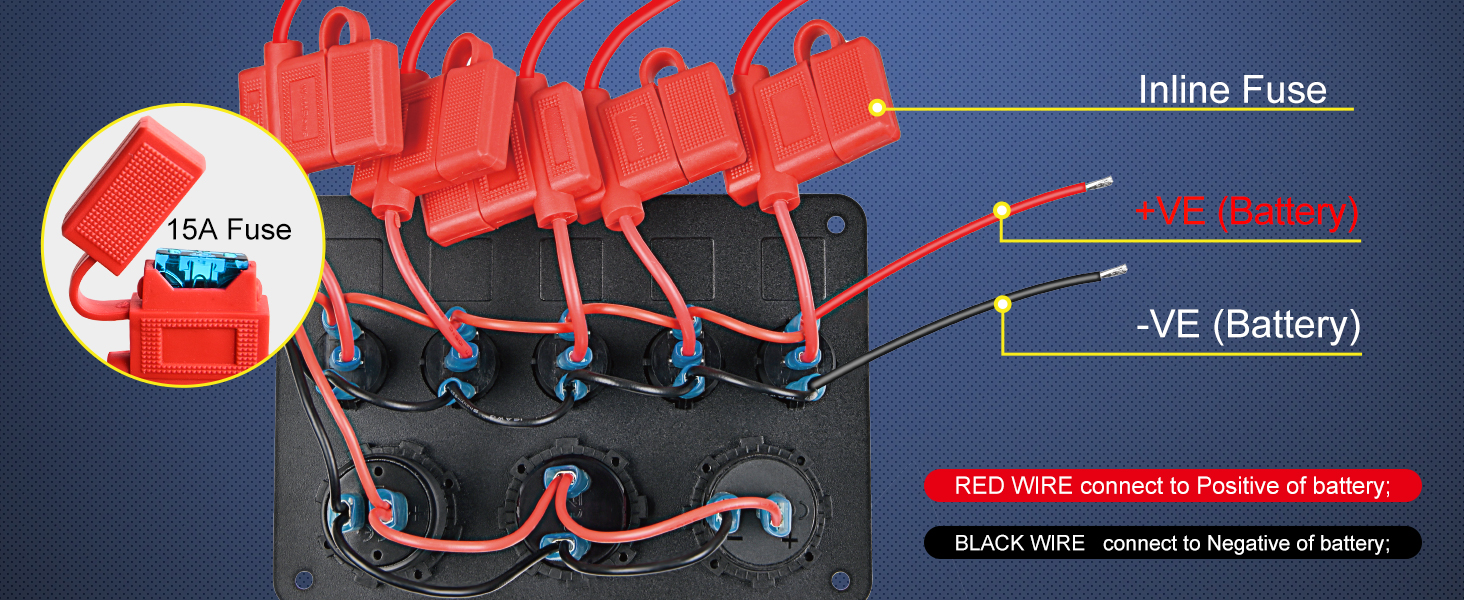 Pre-wire design with 15A inline fuse providing you with an overload, over-current and short circuit protection.