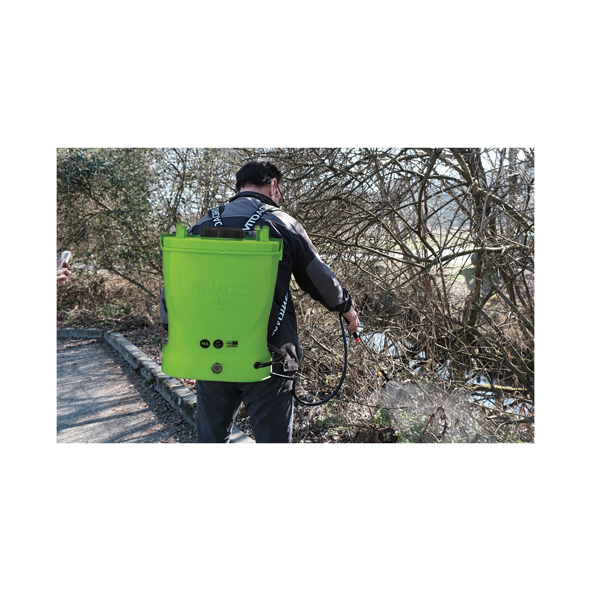 Pulvérisateur dorsal à batterie VITO 12V de 8aH. Autonomie 4h. Capacité 16L. Frein de position. Pression 6 bars max et débit 3.1L/min permettent de pulvériser une grande surface pouvant atteindre 1200 m². Inclus : potentiomètre de réglage, buse 2 en 1, double buse conique, chargeur, lance.