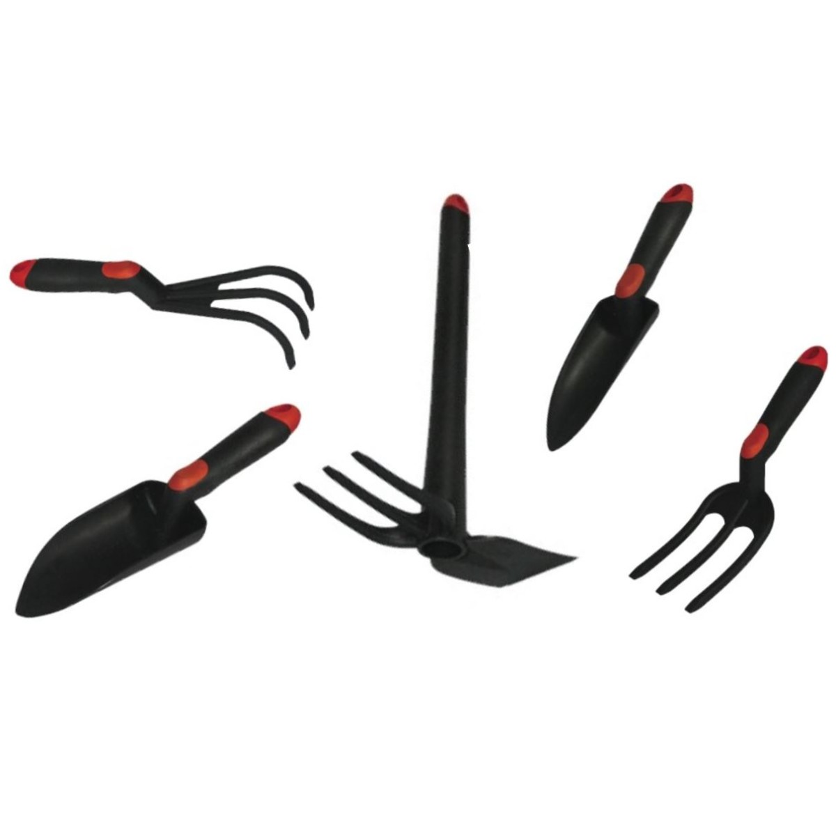 Ensemble BRIXO 5 outils de jardin en plastique résistant et durable. Outillage de jardin idéal pour entretenir vos jardins, potagers, massifs ou pots de fleurs. Matériel léger et robuste conçu pour une utilisation régulière par tous temps et toutes températures, anti-uv. Ergonomique, facile à ranger et facile à nettoyer.