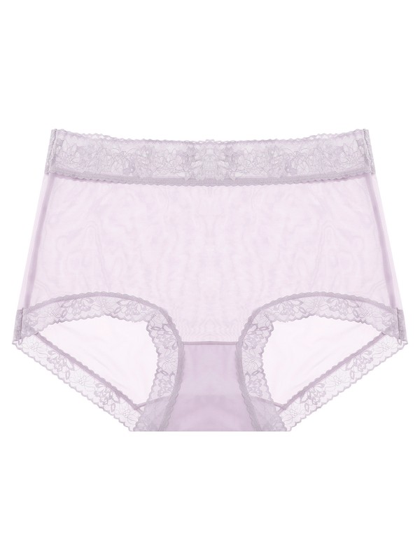 Satin and floral lace patchwork on front, low-rise with comfy elastic strappy waistband.