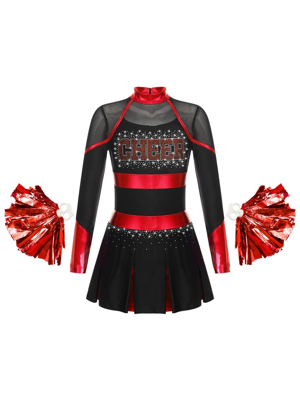 Girl’s cheerleading dance dress with glittery rhinestones letter pattern makes your child eye-catching in the crowd.