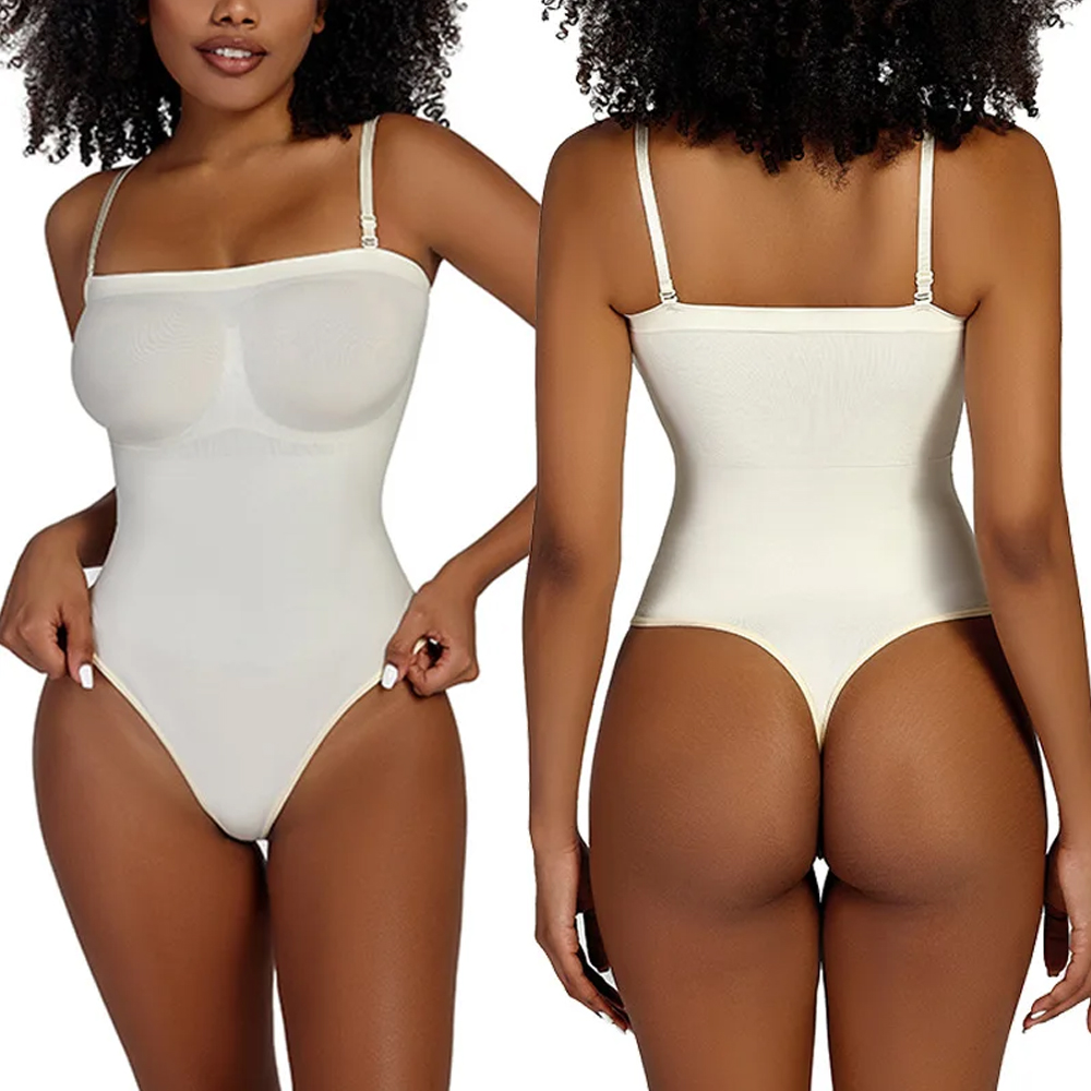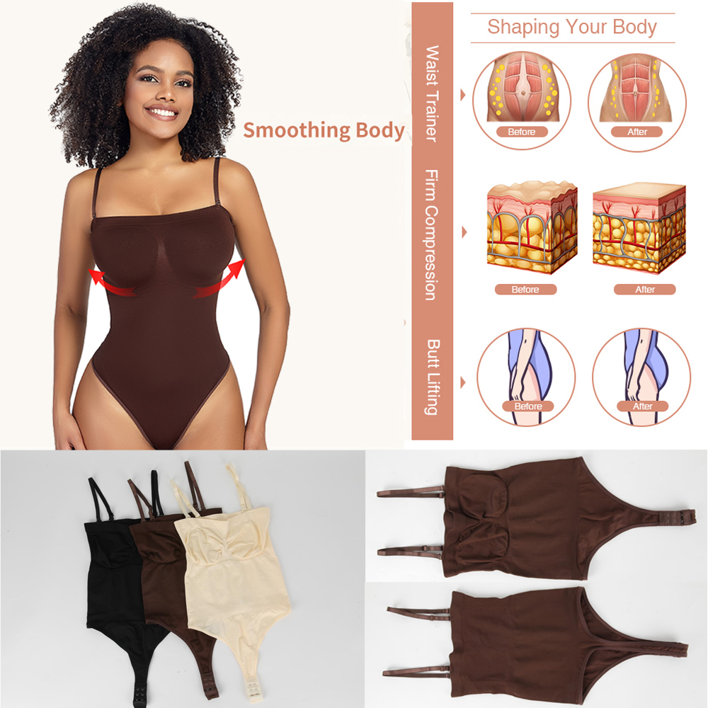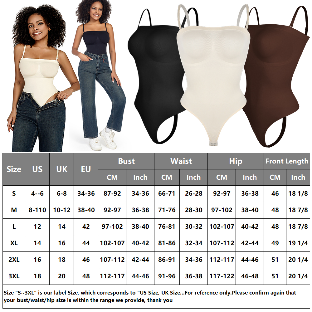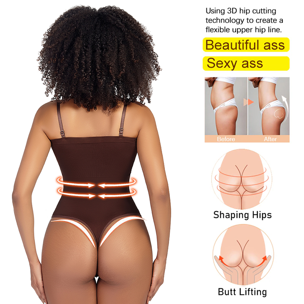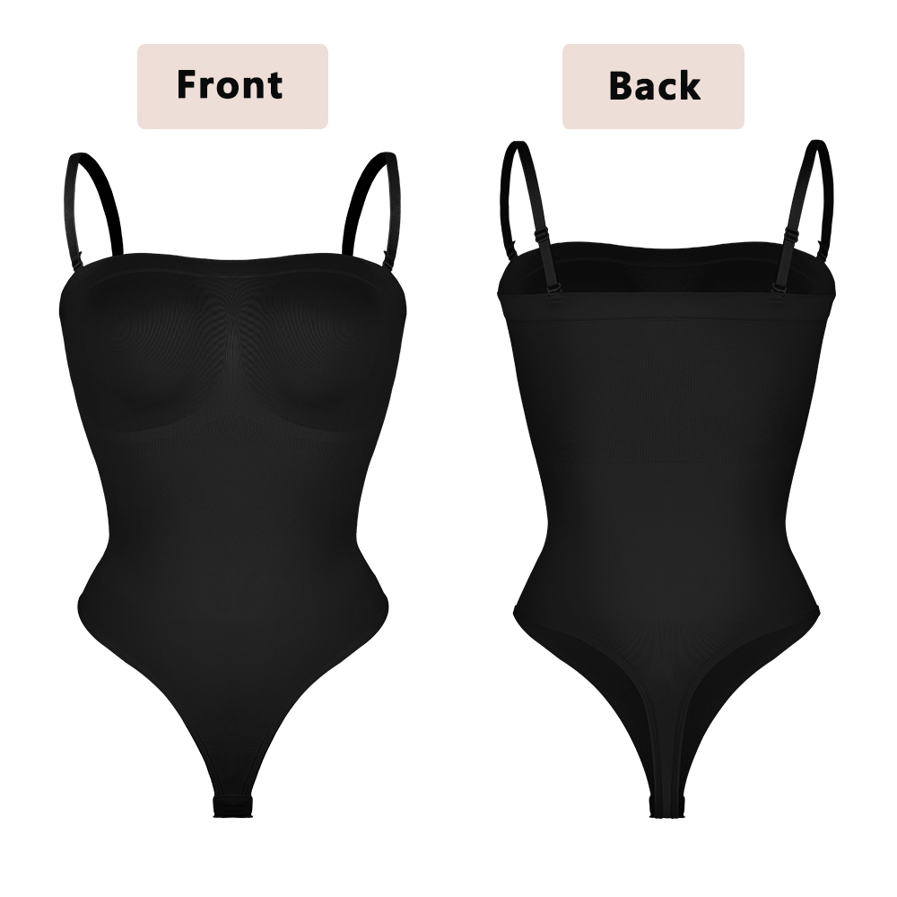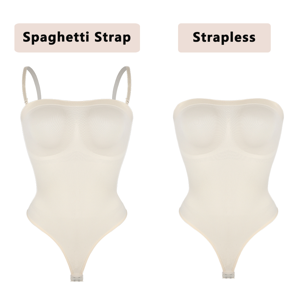 🎀【CONVENIENT THONG DESIGN】The thong shapewear for women with 2 adjustable hooks making it convenient to use the bathroom and easy to put on and take off. The removable and adjustable straps of this strapless bodysuit are non-slip designed, ensuring that the shapewear strapless will stay in the right place and immobilize your loose fat at the same time.