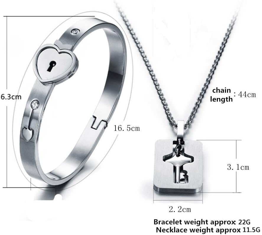 Romantic Stainless Steel Bracelet Love Heart Lock Bangle Key Pendants Necklace Lovers Jewelry set