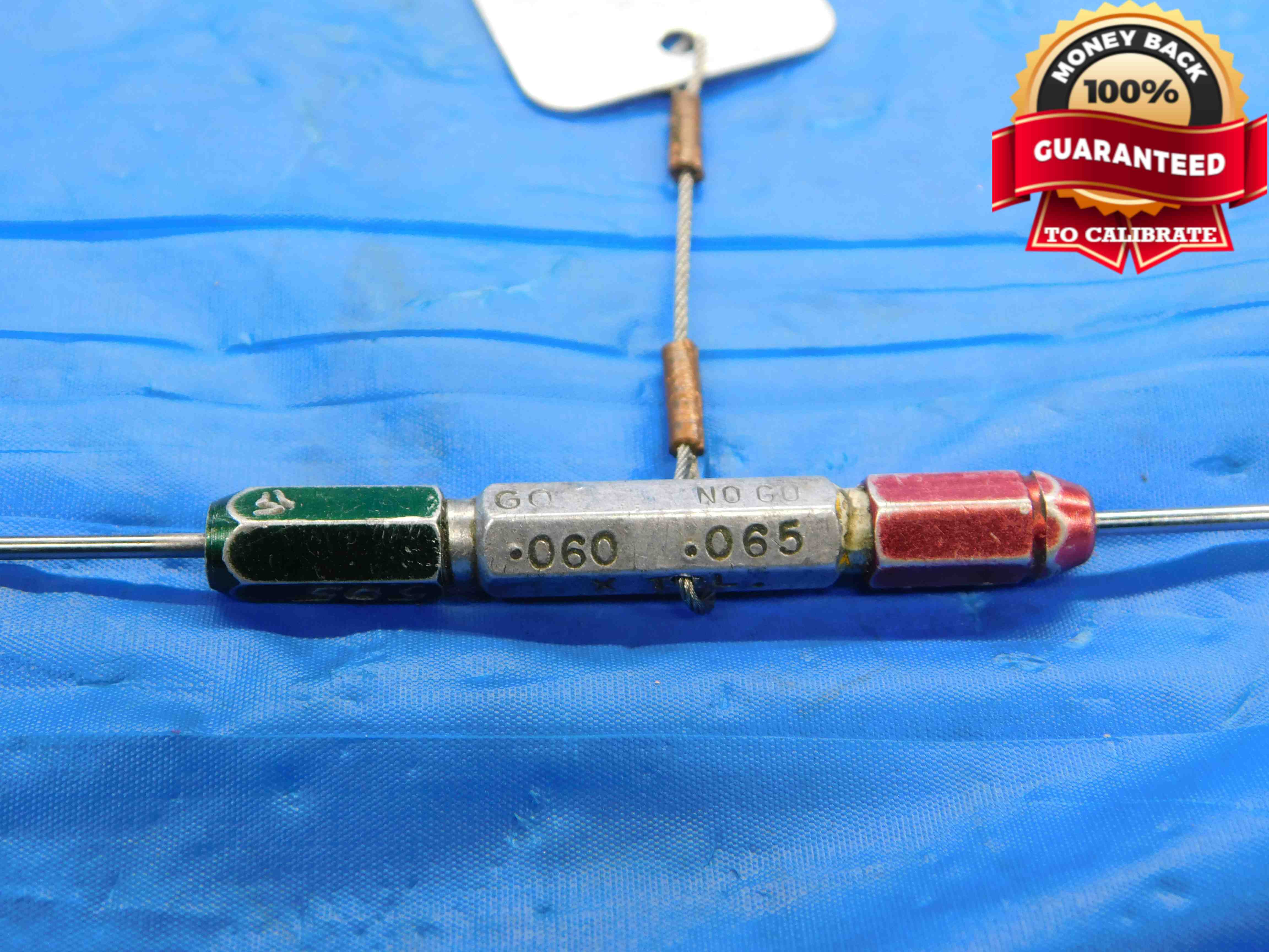 .0600 & .0650 CL X PIN PLUG GAGE GO NO GO .0625 -.0025 1/16 1.651 mm .060 .065