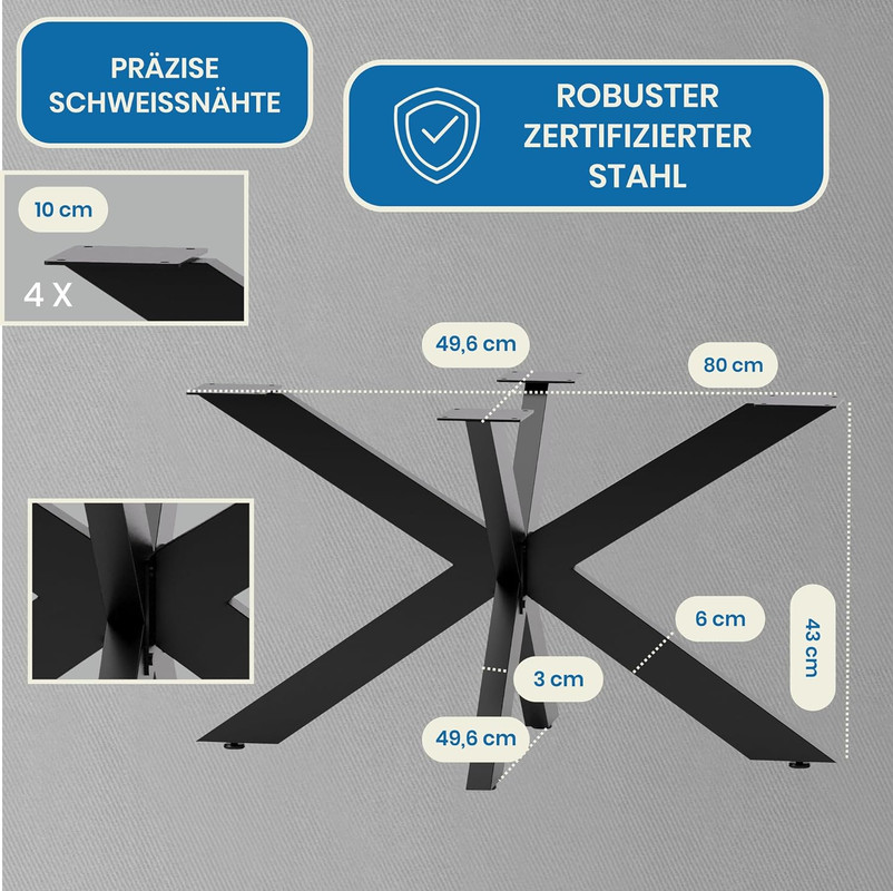 🕷️ SPIDER KREUZGESTELL DESIGN Mit unserem charakteristischen Tischgestell und einer passenden Tischplatte kreieren Sie mühelos einen zeitlosen Couchtisch, Sofatisch oder Beistelltisch. Das markante "SPIDER"-Kreuzgestell verleiht Ihrem Wohnzimmer oder Büro eine einzigartige, moderne Note.