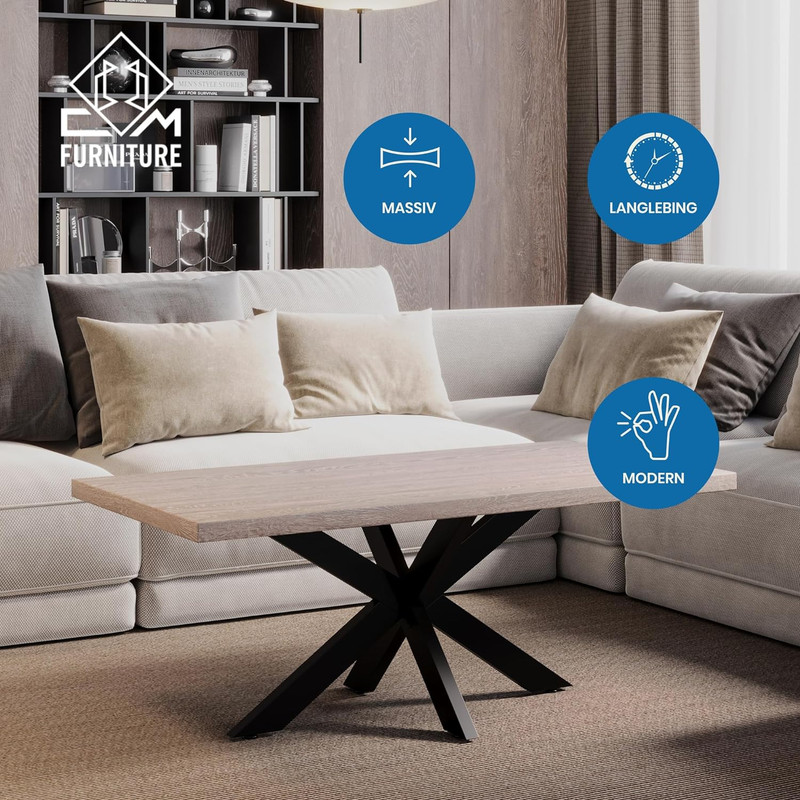 🎯 VIELSEITIG EINSETZBAR Unser Spider-Tischgestell eignet sich optimal für niedrige Sofatische, Couchtische, elegante Beistelltische und moderne Kaffeetische in stilvollen Wohnzimmern.
