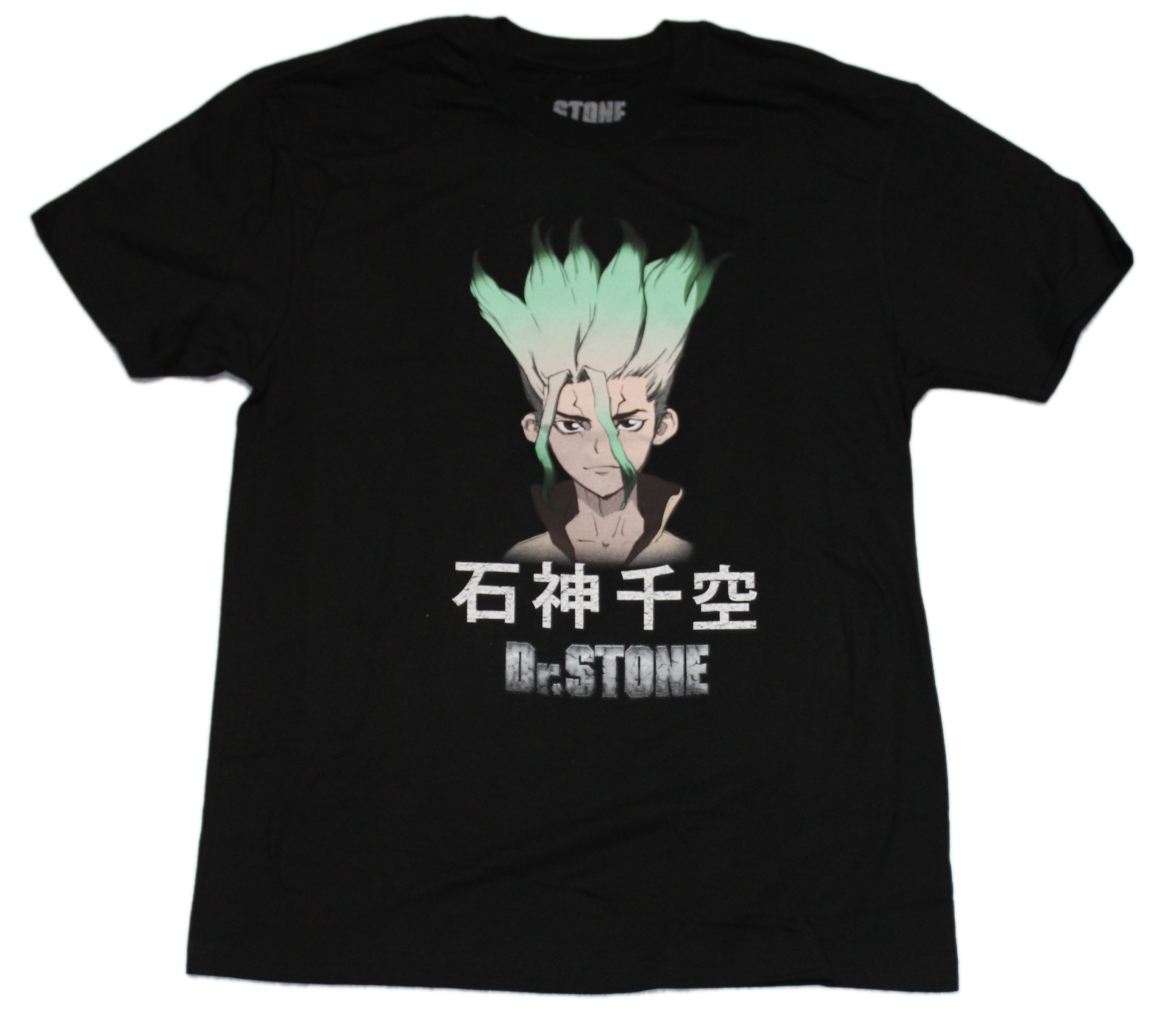 Dr. Stone New Adult T-Shirt - Senku Headshot Over Kanji Logo