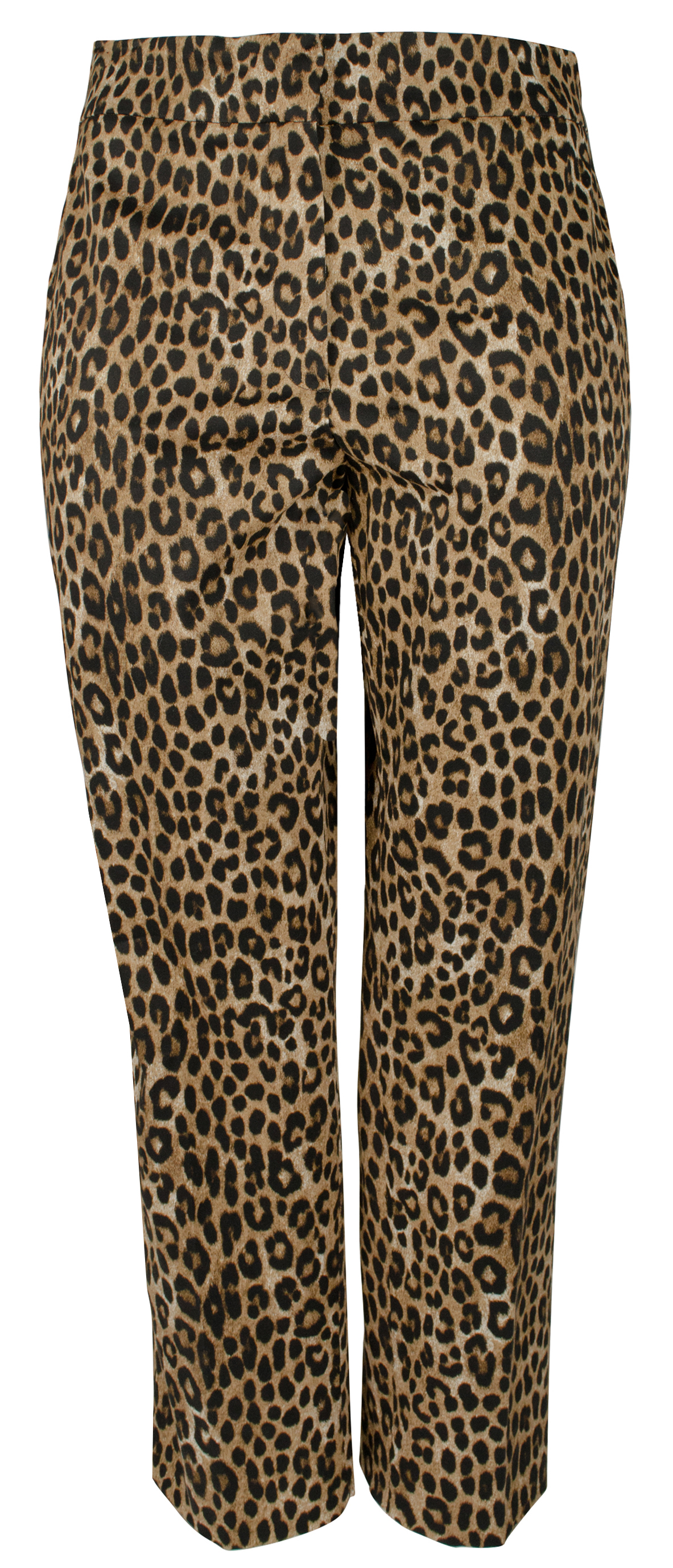 97% Cotton 3% Elastane, Cheetah print. Stretch twill fabric., Flat front. Slim leg with slit. Welt pockets.