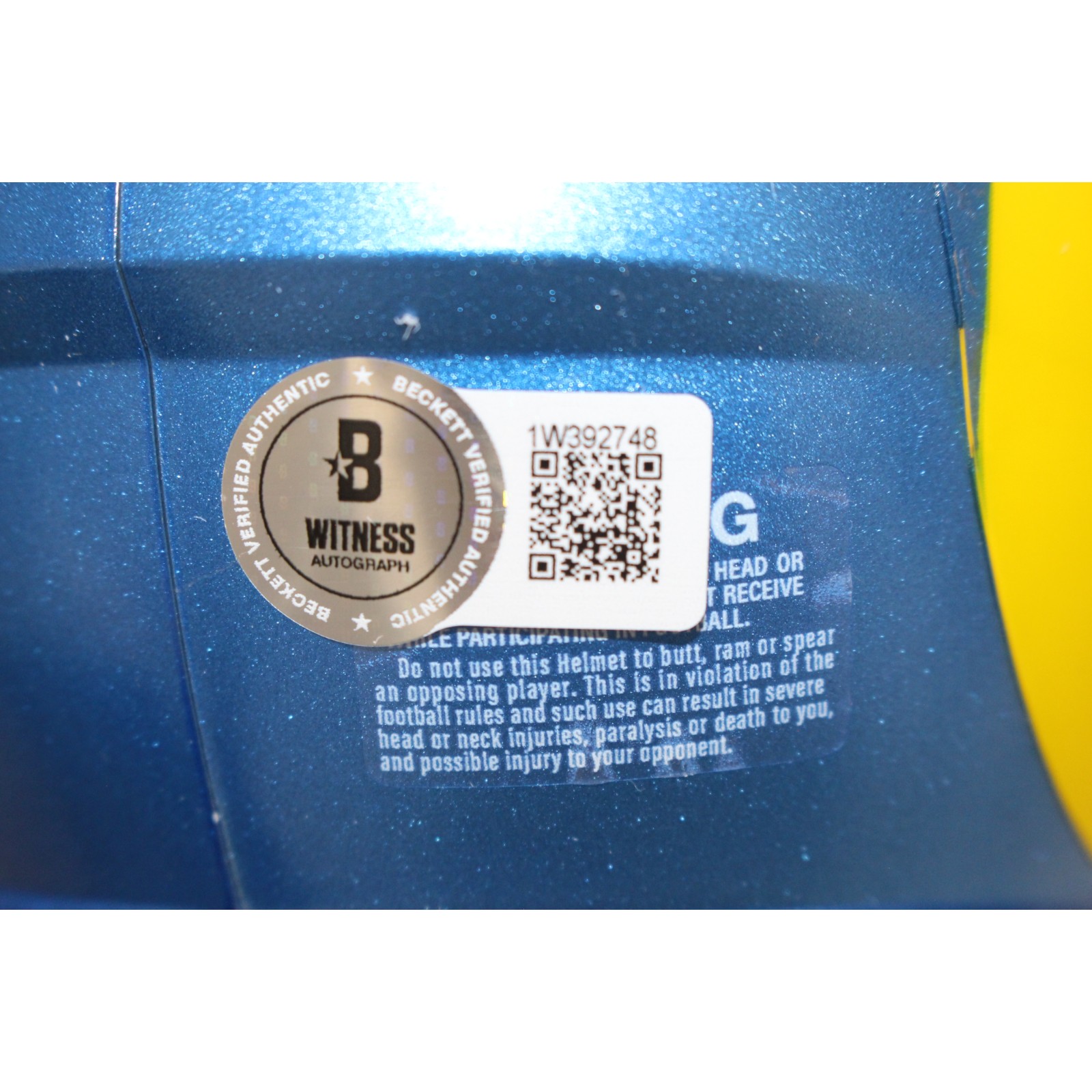 The number in the listing title is just an inventory sku for our records and is not the authentication number. The item pictured is a stock photo unless otherwise noted. This is a Los Angeles Rams Speed Mini Helmet that was personally autographed by Aaron Donald. Includes a certificate of authenticity from Beckett Authentication Services (BAS) and Denver Autographs.