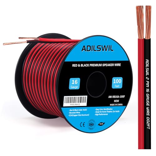 Speaker Wire Cable 16 Gauge 100FT 16/2 AWG CCA Red Black Wire 2 Conductor Bonded Zip Low Voltage Wire DC 12V/24V Stereo Audio Light Car Wire CL2 Electrical Wire for Hookup and Extension