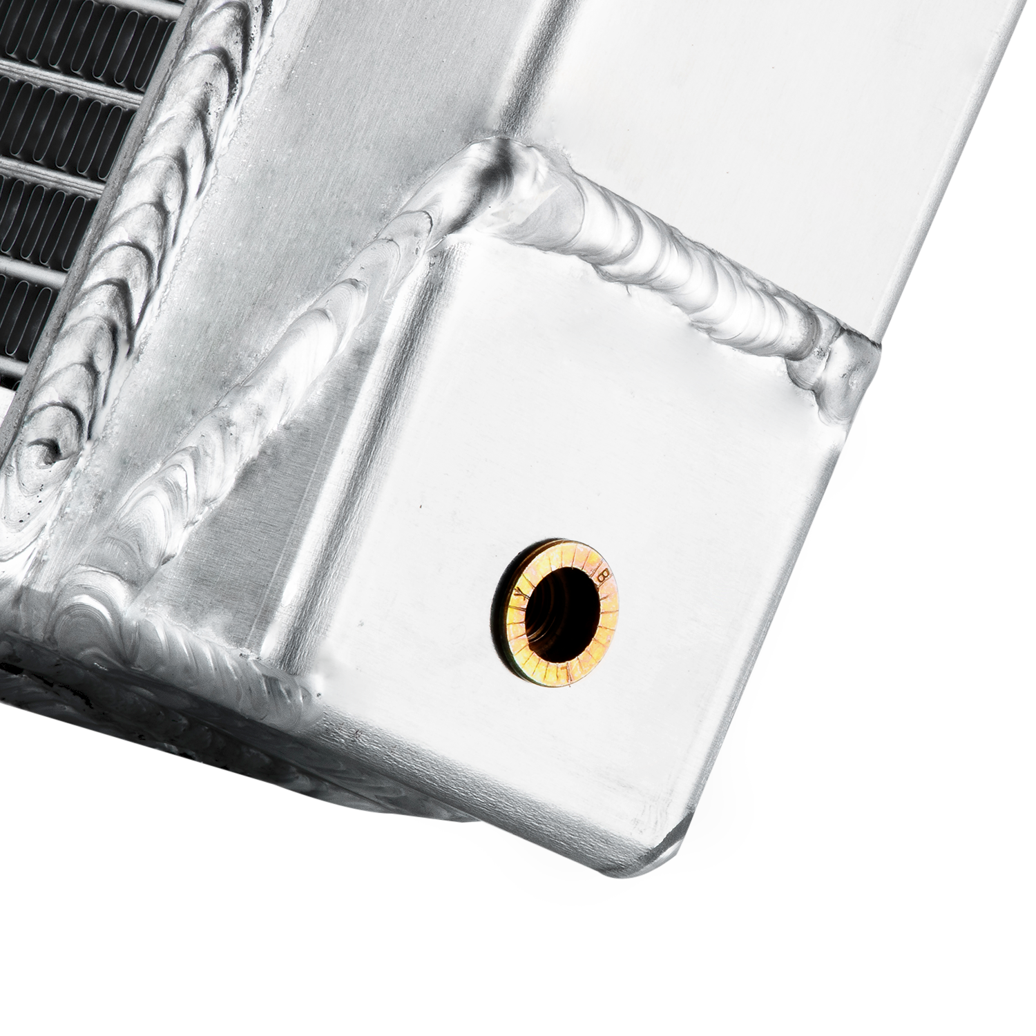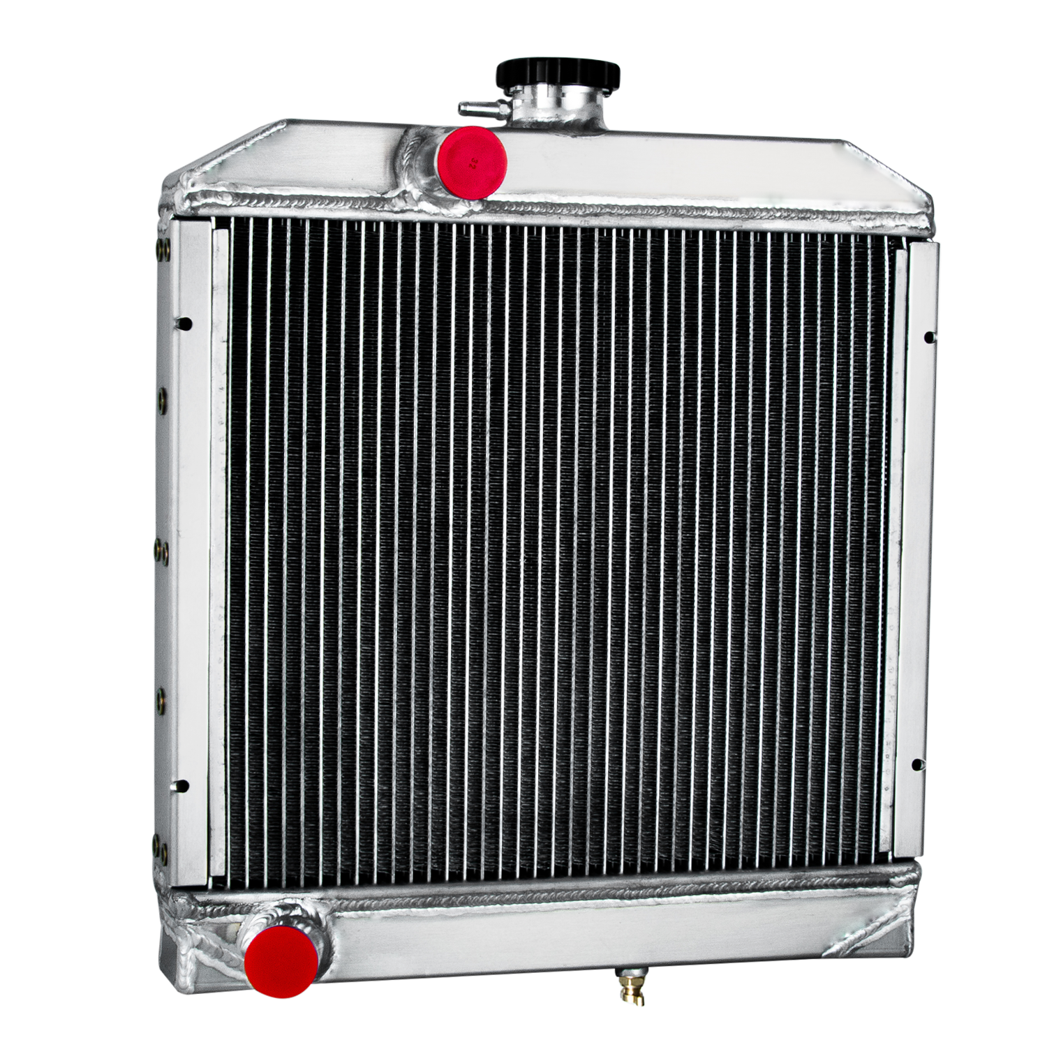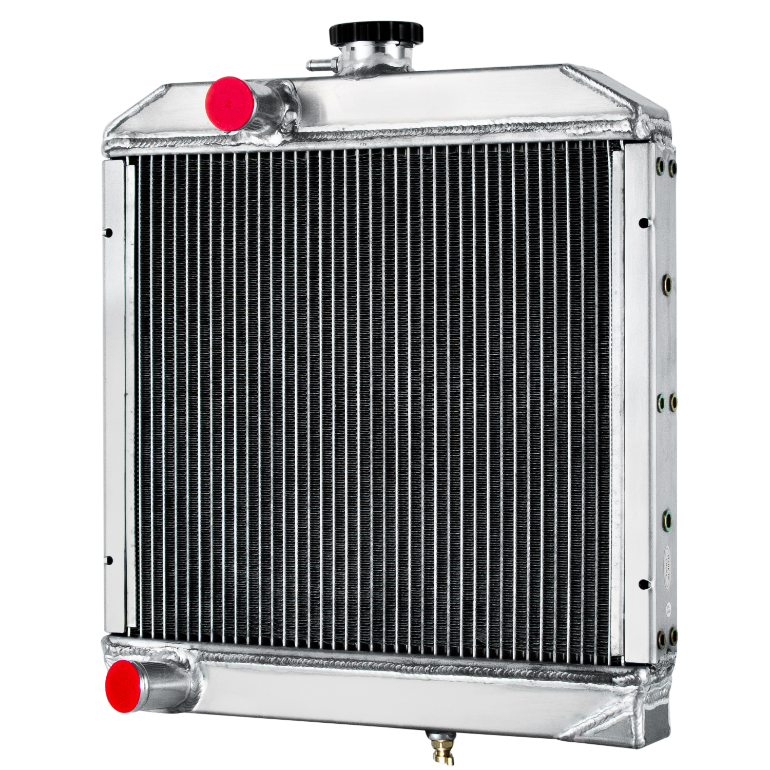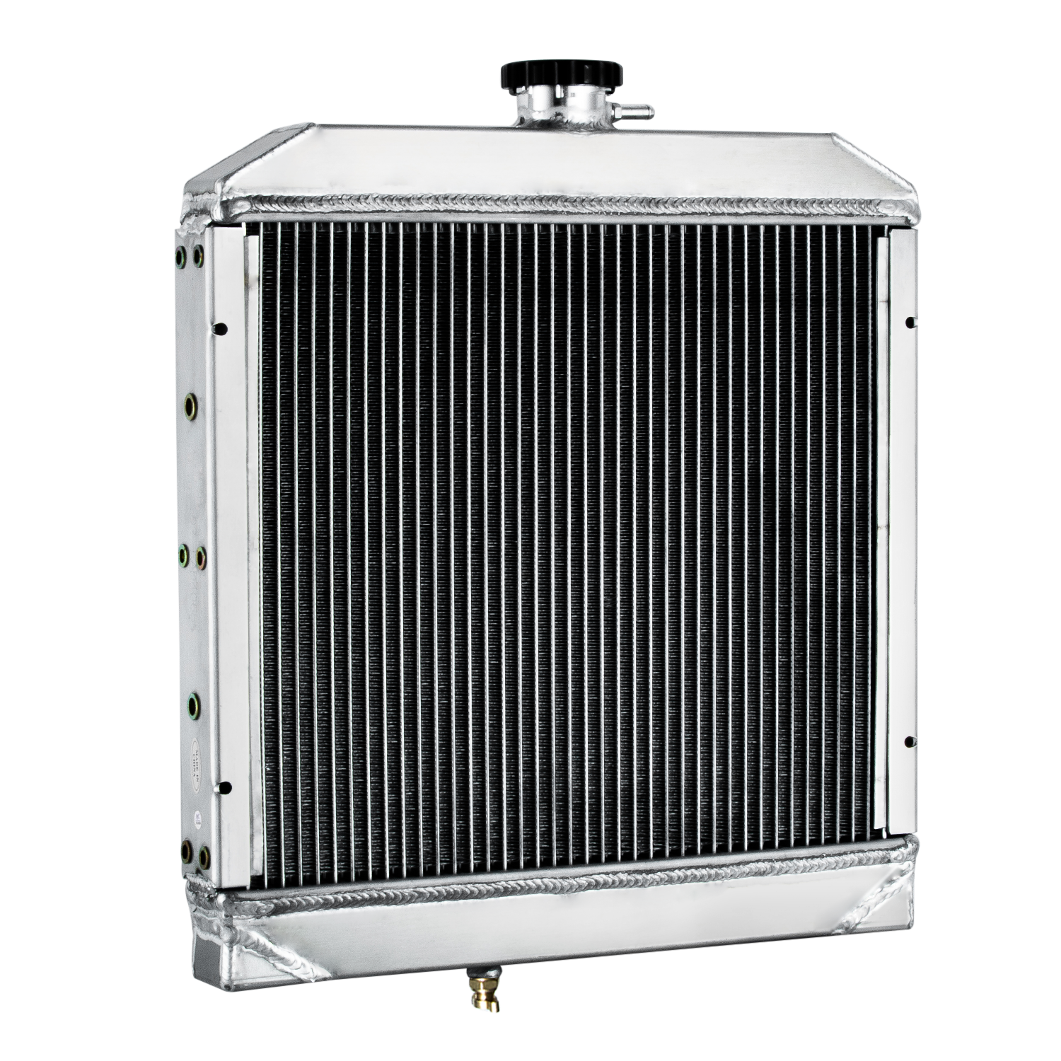 3.14-16 cooling fins per inch,giving you approximately 1500 more cooling fins than other aluminum radiators. AA5052 aluminum radiator core can be made more efficient by changing the tube spacing and fin count. If the tubes are placed closer together and the fins are packed in tighter a denser core is created that throws off much more heat. A high efficiency core can have tubes on 3/8" centers and fin counts increased to 14 to 16 FPI,That may not seem like a big deal but the surface area is greatly increased. Combined with all the additional fins between the tubes this provides approximately 30% to 45% better cooling than the OEM radiator had.