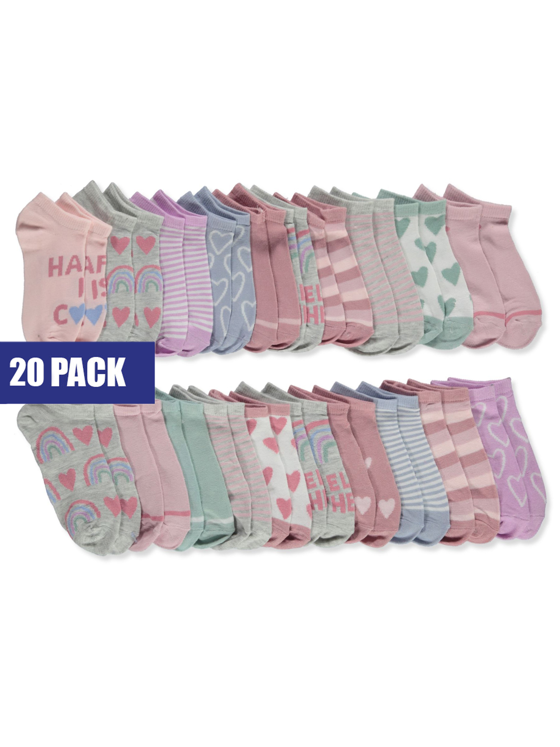 Elle Girls' 20-Pack No-Show Socks - rose, 4 - 6
