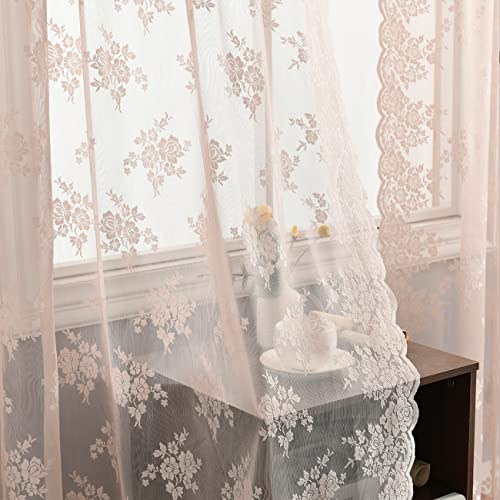 Stylish Design: These blush lace sheer curtains feature a delicate vintage floral pattern that adds a touch of romance and elegance to your home. The scalloped edges and the soft lace fabric create a beautiful drape and a cozy atmosphere.