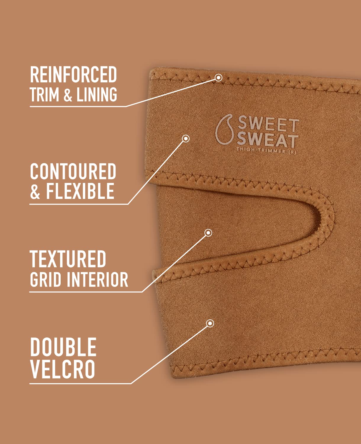 • Sweet Sweat 'Toned' Thigh Trimmers are naturally flexible to adjust to your size and shape. The trimmer's grid inner lining helps prevent moisture absorption & will minimize slipping and bunching during your workout. *