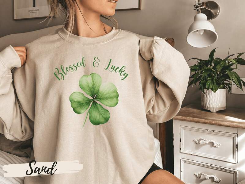 The words 'Blessed' and 'Lucky' are prominently displayed, reminding you to count your blessings and embrace all the good luck that comes your way. Made with high-quality materials, this sweatshirt is soft, comfortable, and perfect for any occasion.
