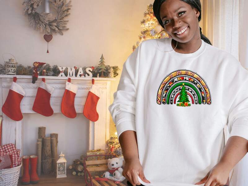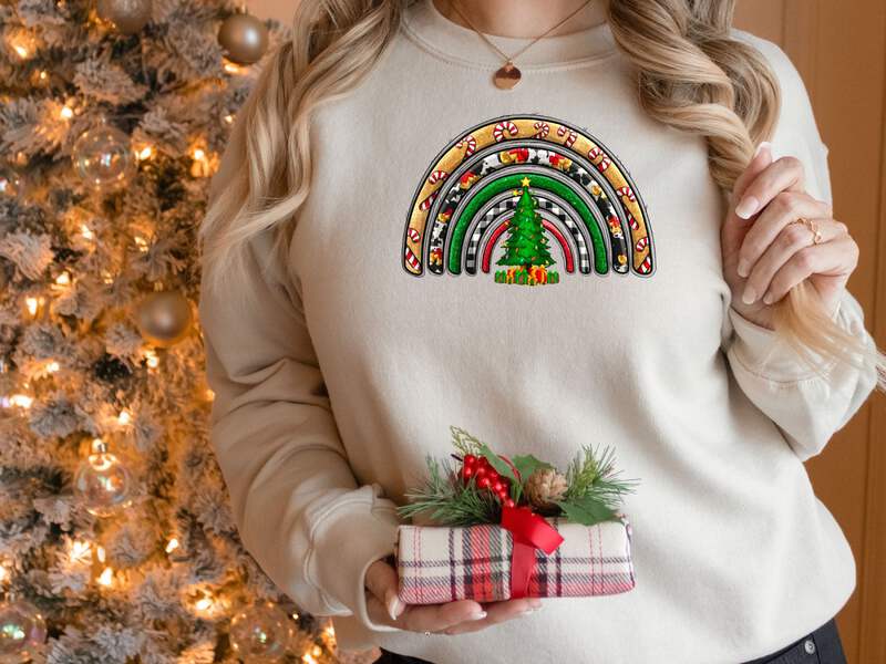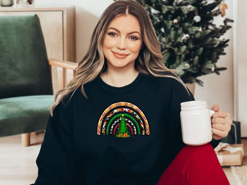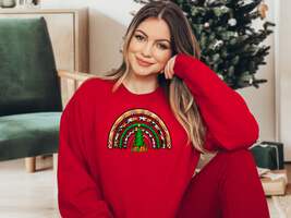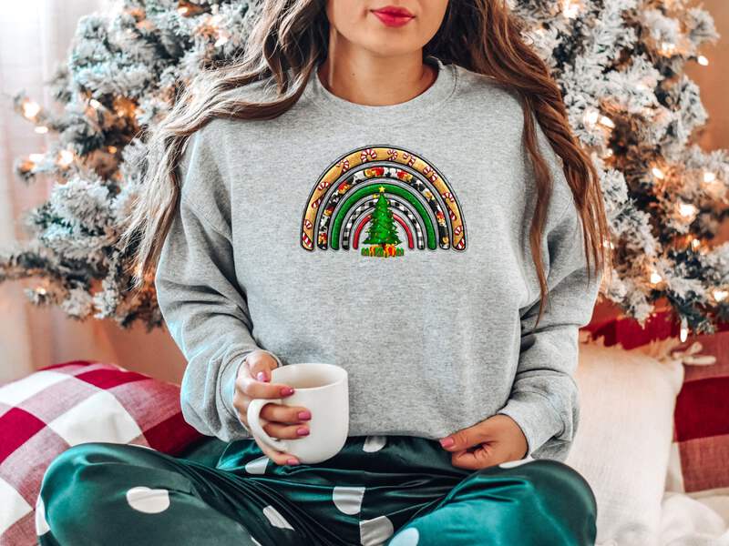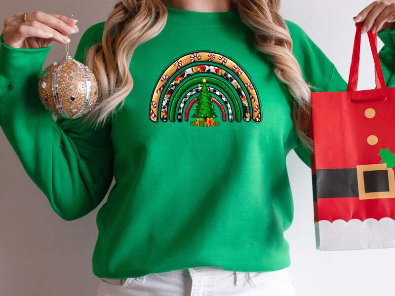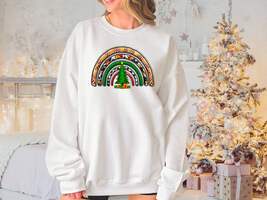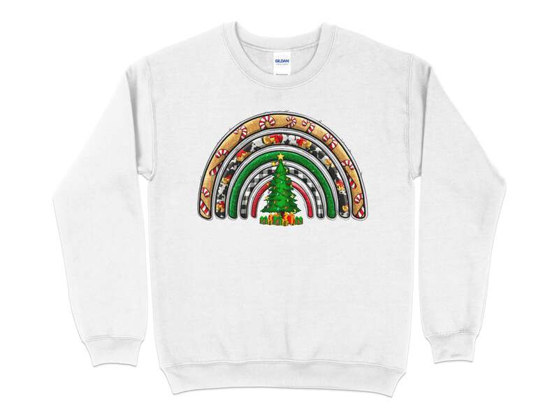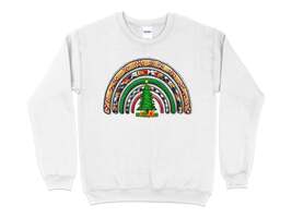 Celebrate the holiday season in style with our Women's Christmas Rainbow Sweatshirt. This cozy sweatshirt is crafted from high-quality Gildan 18000 fabric, ensuring comfort and durability.