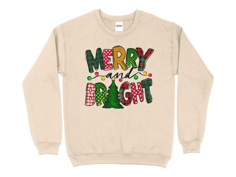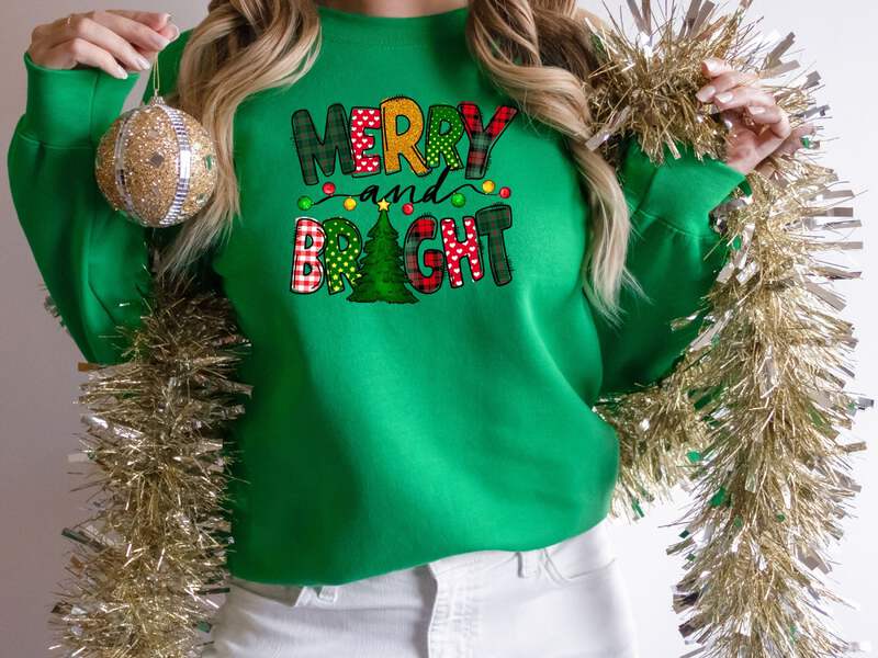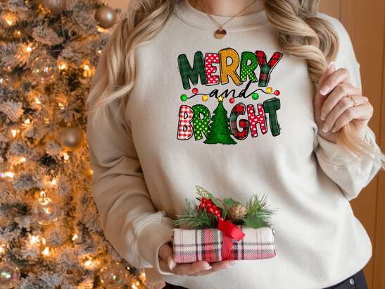Celebrate the festive season in style with our Merry and Bright Sweatshirt. This cozy crewneck is perfect for women who want to spread holiday cheer while staying comfortable.