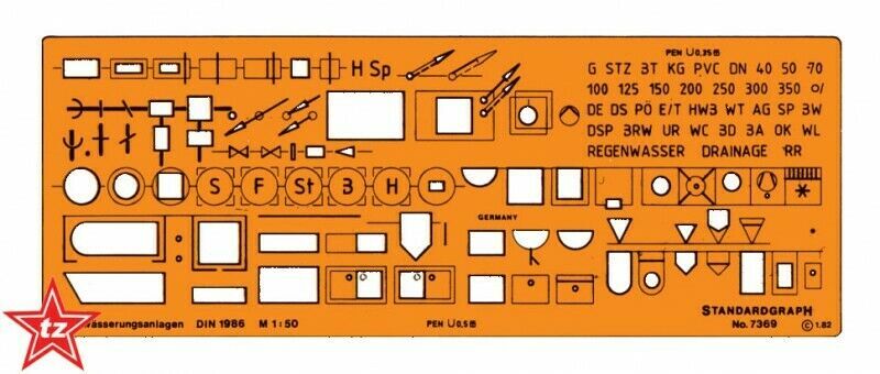 Sofort Kauf standardgraph 7369 Schablone Entwässerungsanlagen 1:50 - NEU & OVP