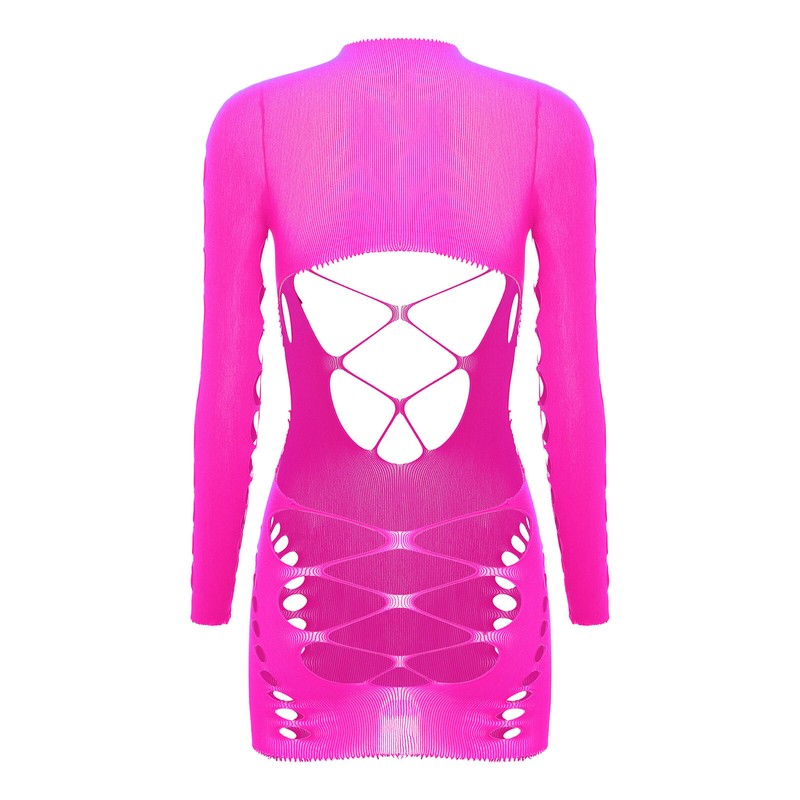 Women's Nightdress Fishnet Dress See-through Dresses Long Sleeve Nightwear Rave
