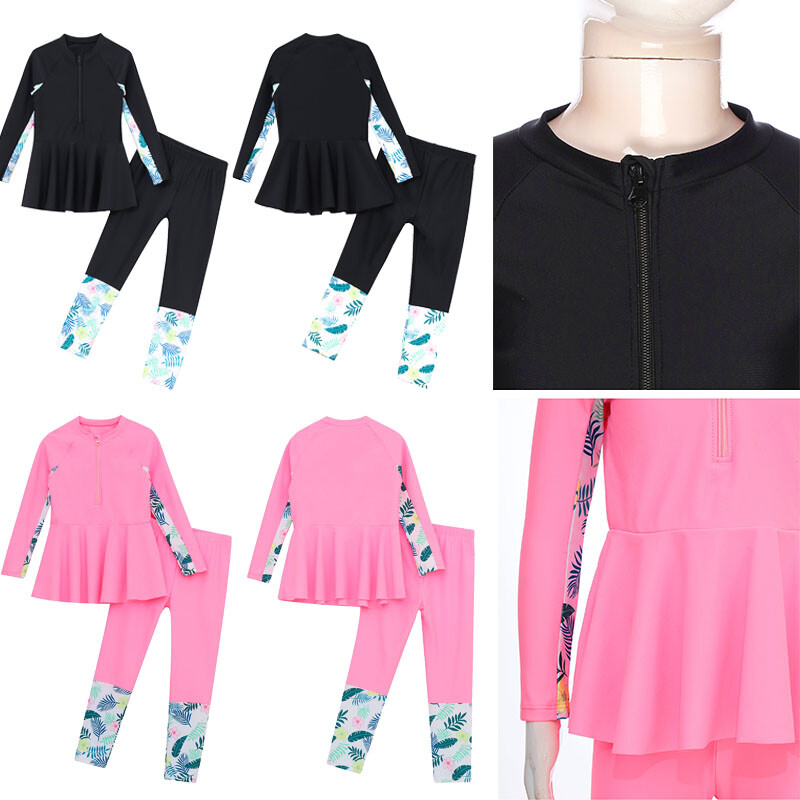 2Pcs swimsuit of long sleeve top and pants for girls, offer full coverage and UPF 50+ sun protection for girls.