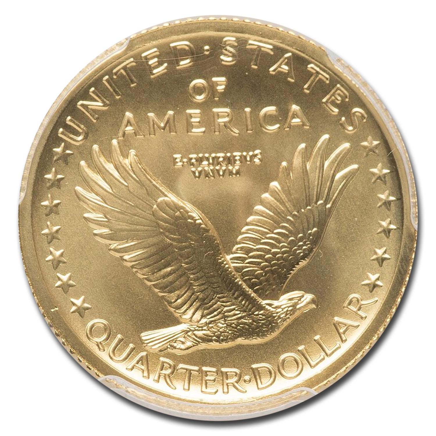 - Reverse: Depicts an eagle in flight with its wings outstretched. The eagle is flanked by 13 stars, seven on the left and six on the right. This was the original design by Hermon A. MacNeil.