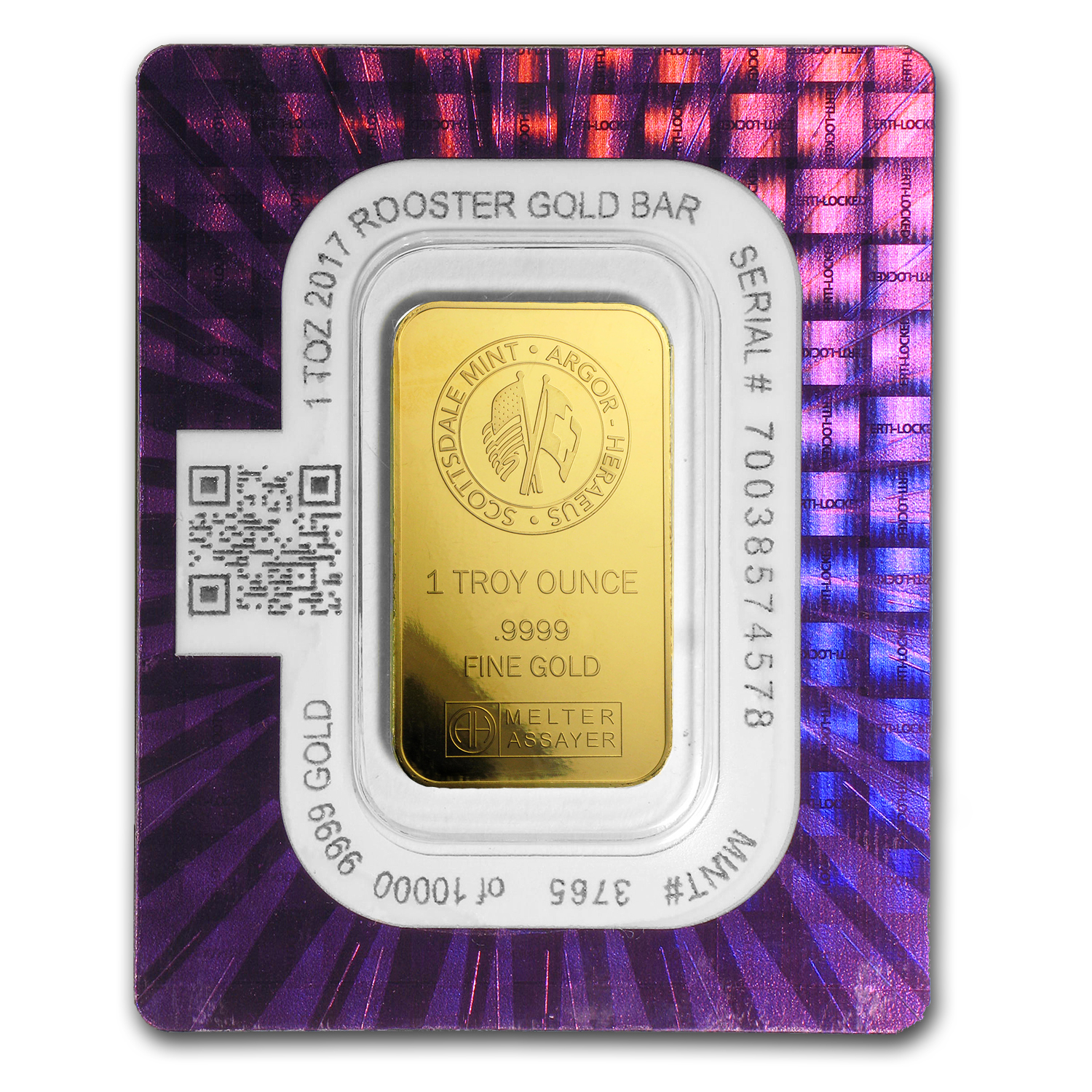 - Individual bars are presented in Certi-Lock® assay, featuring a unique serial number, along with weight and authentication of the bar by the assayer.