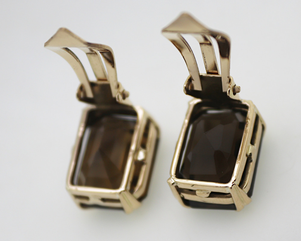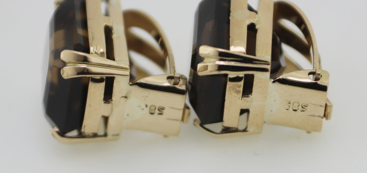 tw., emerald-cut smoky quartz, 14k yellow gold non-pierced earrings, marked: 585,