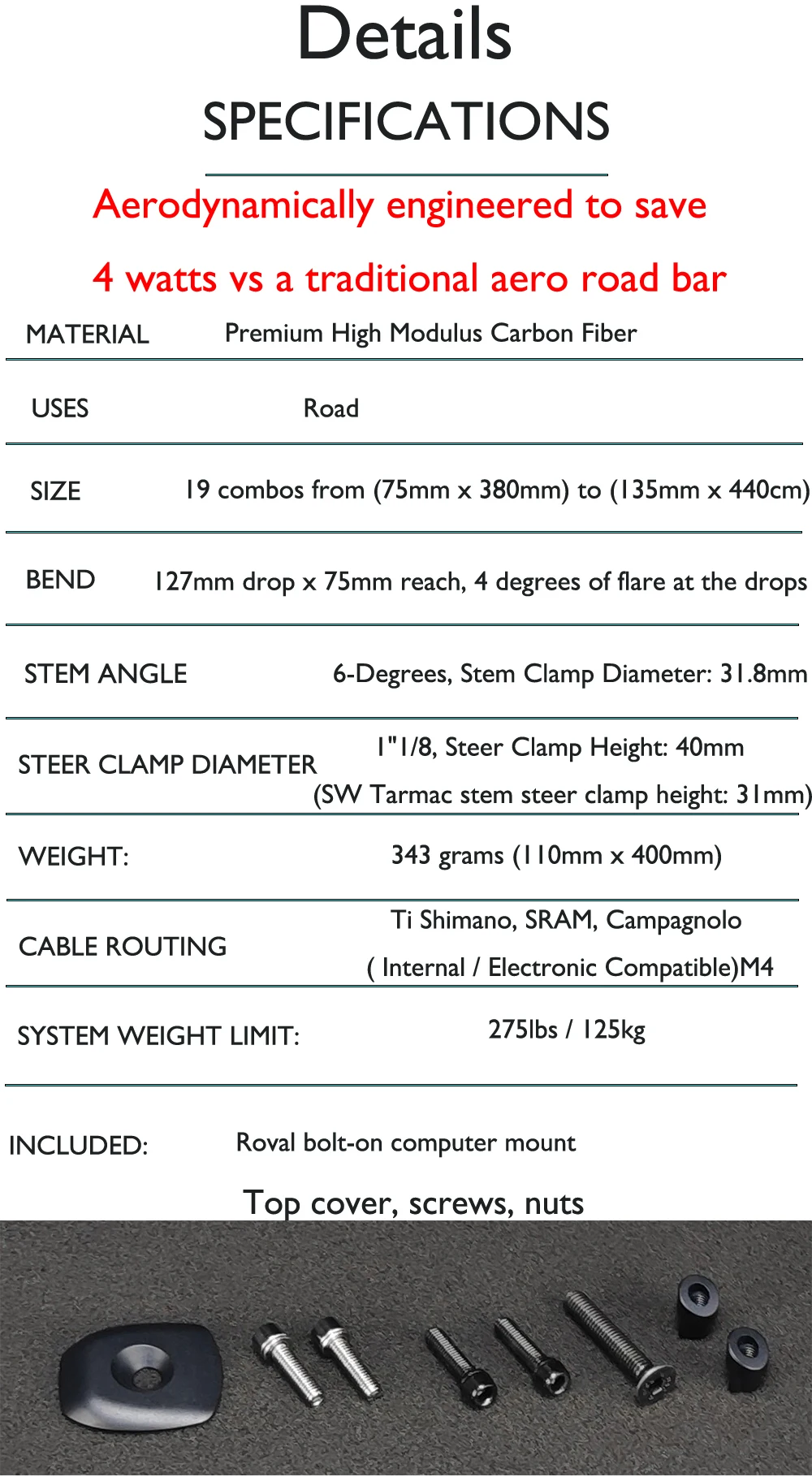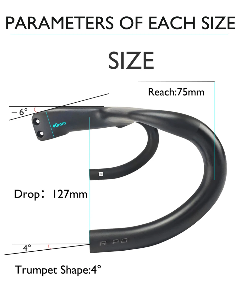 Bend: 127mm drop x 75mm reach, 4 degrees of flare at the drops