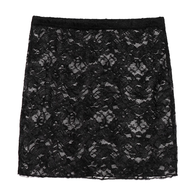 Women Flower Pattern See-through Lace Skirt Mid Waist Elastic Waistband Sheer Miniskirt Nightwear.