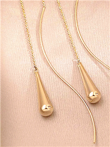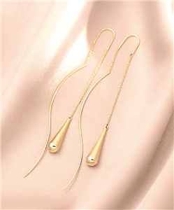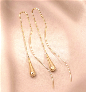 Chic & Unique! These gorgeous artisanal 3" long dangle earrings feature an elongated gold cone with thin links chain and thin curved threader wire. They are comfortably dangle on your ears & look great with any outfit!