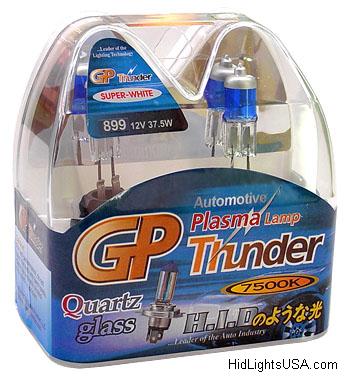 1, GP Thunder bulbs are made of fused quartz glass so they can produce high generating power even though they are just smaller. They have excellent heat shock-resistance and they won't be broken even though they have water on their surface when they light on. GP Thunder bulbs also prevent any damage to the lens and wiring harness because their newest design .