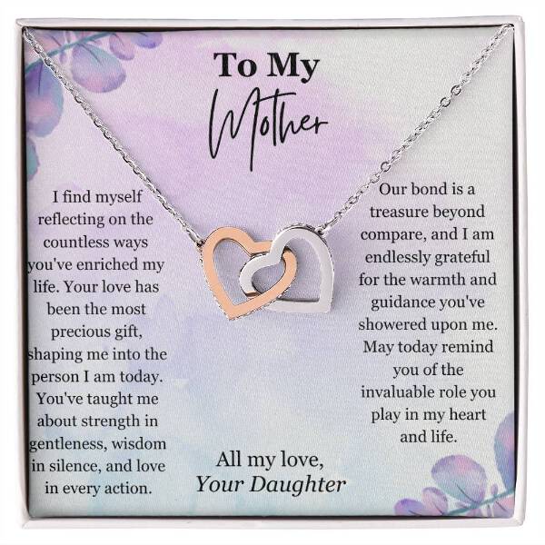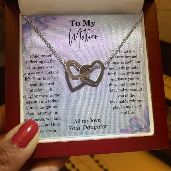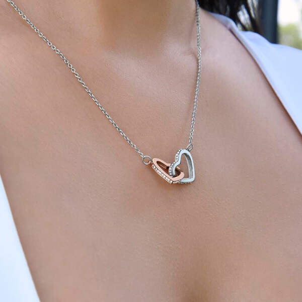 Give Mom something symbolizes your never-ending love. Featuring two lovely hearts embellished with cubic zirconia crystals, this Interlocking Hearts necklace is the perfect accessory for everyday wear. Whether it's a memorable anniversary or a special birthday, make sure to dazzle your special someone by gifting them this stunning necklace.