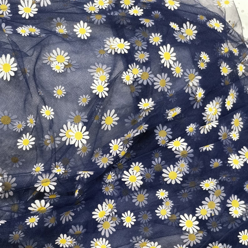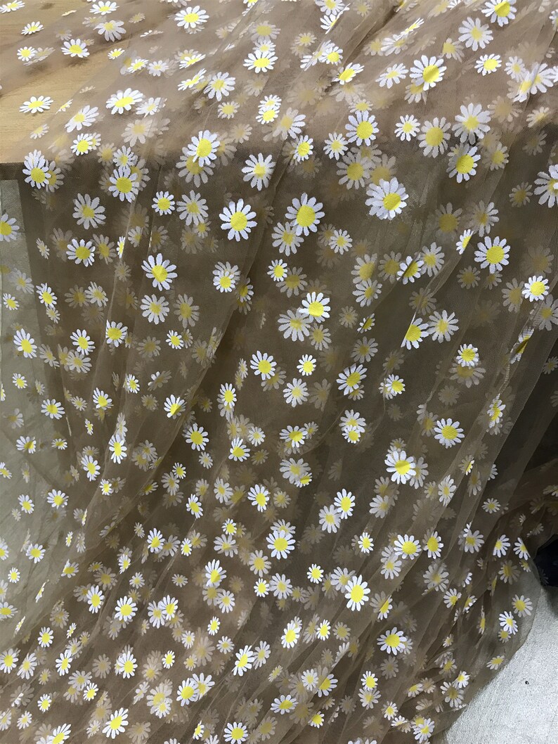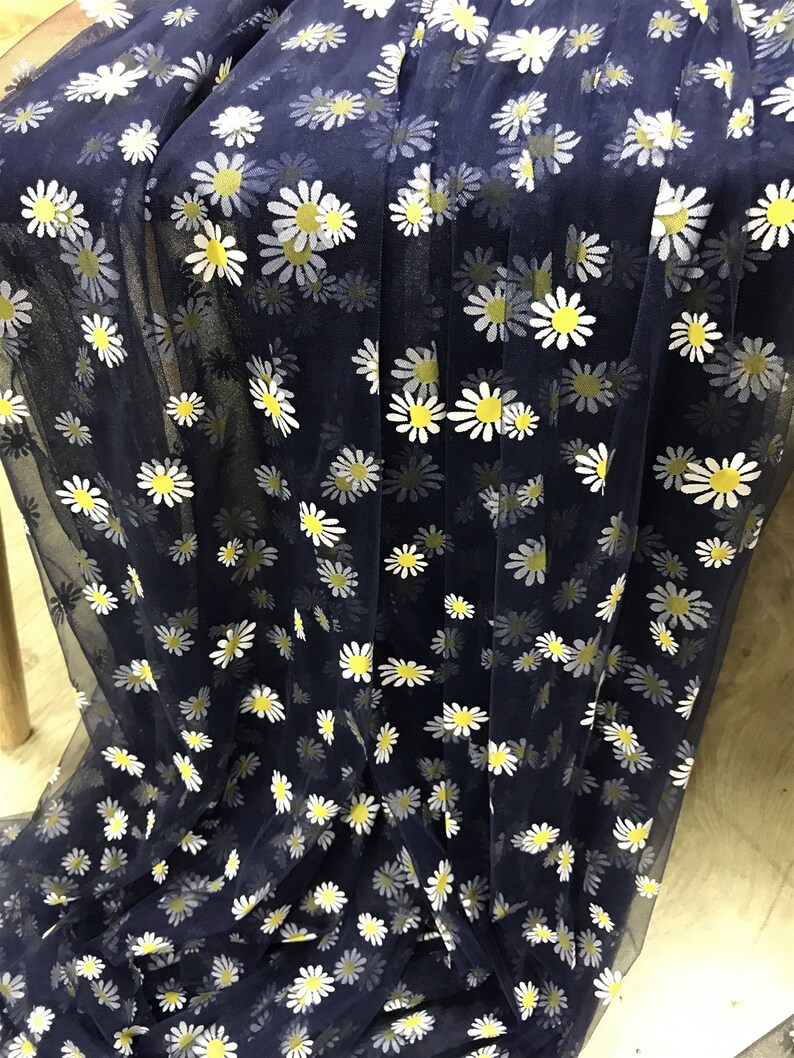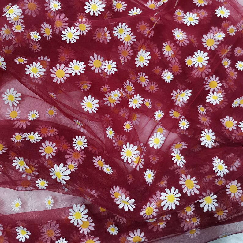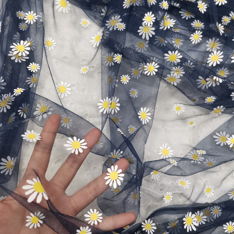 Daisy print Tulle Lace Fabric, Floral Tulle Lace, new 4 colors, Daisy printed Gauze Fabric By Yard.