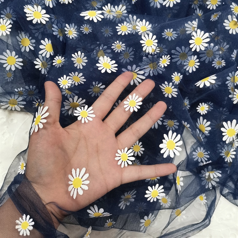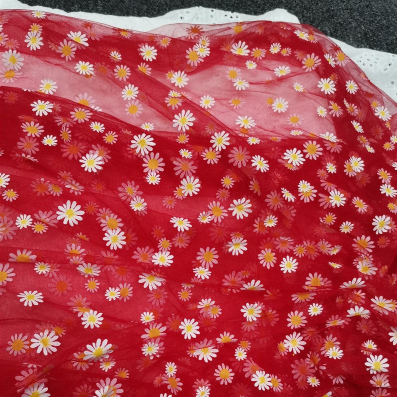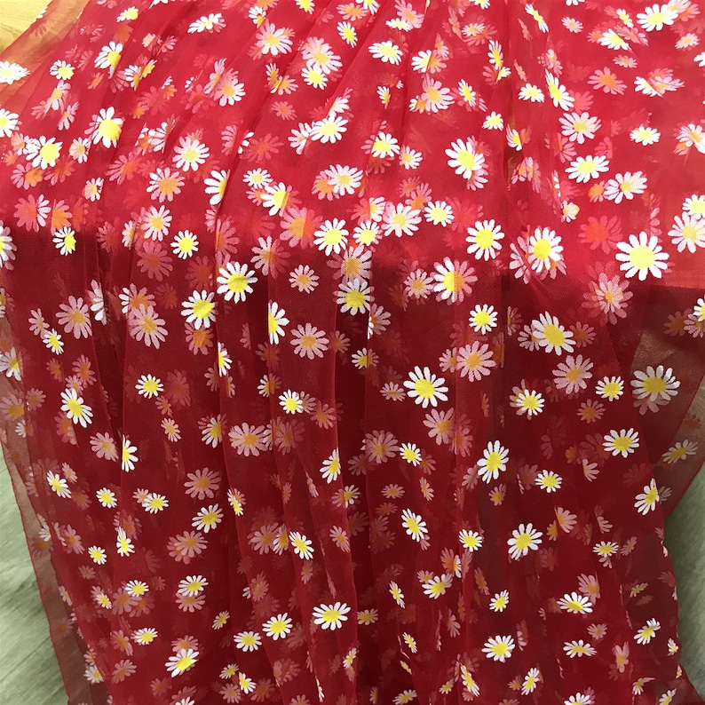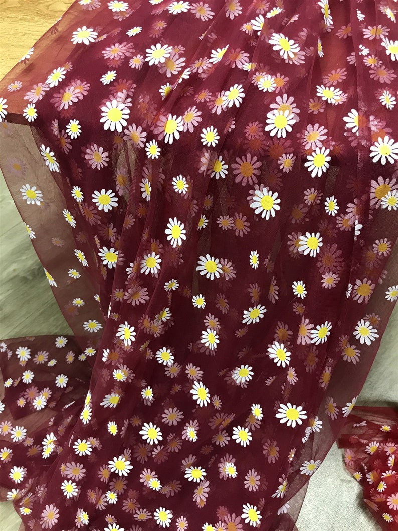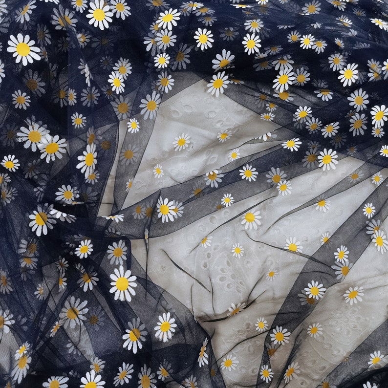 Daisy print Tulle Lace Fabric, Floral Tulle Lace, new 4 colors, Daisy printed Gauze Fabric By Yard.