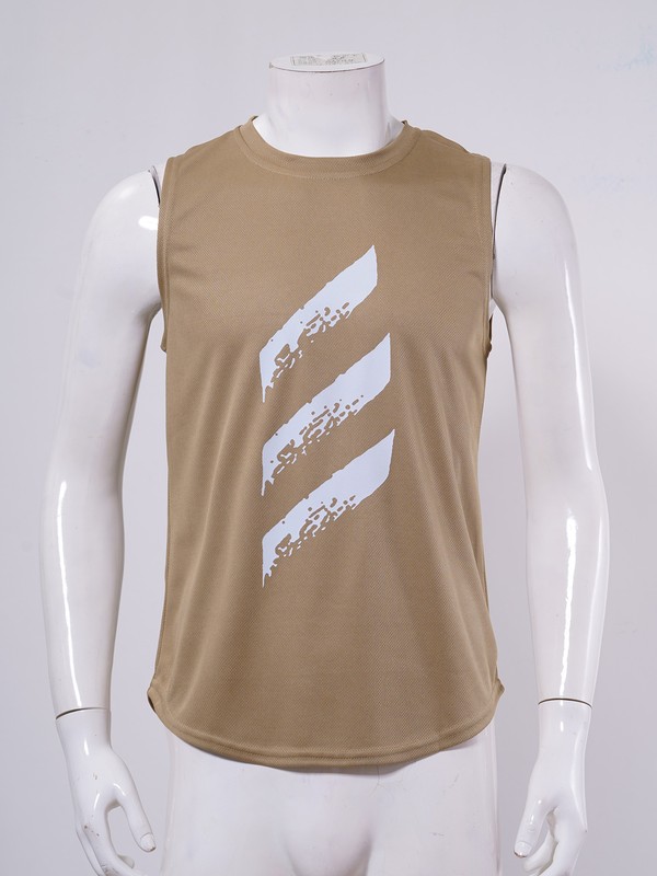 Man Round Neck Sleeveless Racer Back Sport T-shirt Vest Top for Running Gym Fitness Ball Games.