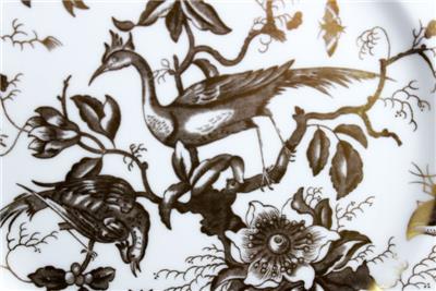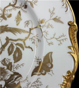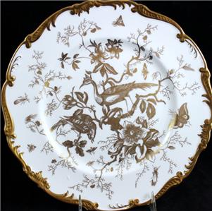 This elegant pattern was produced by Coalport from 1970 through 1974 and is now discontinued. It features gold birds on white with a raised gold trim.