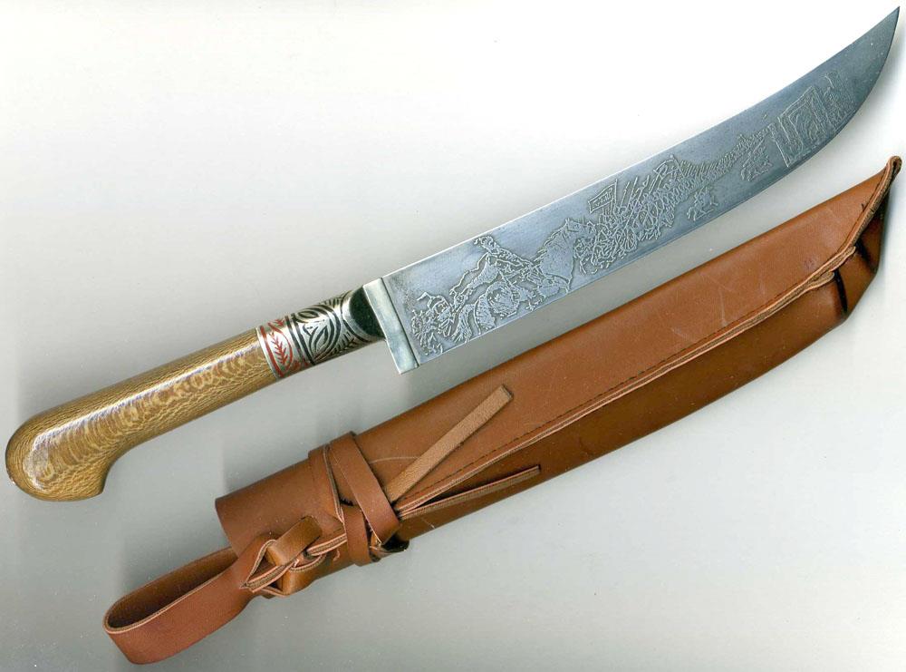 Uzbek knives have peculiarities inherent to the culture of the Central Asia. Therefore, the width of the blade is more than the diametre of the handle. Knives can have typesetting, one-horn or wooden handle.