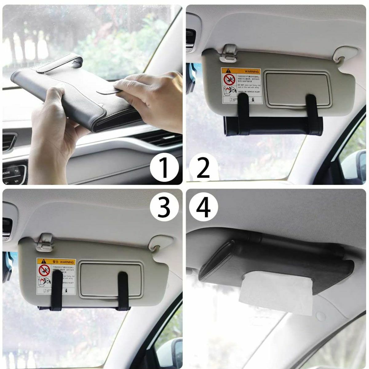 Can be fixed on sun visor, makes your car inside so tidy and fresh state.