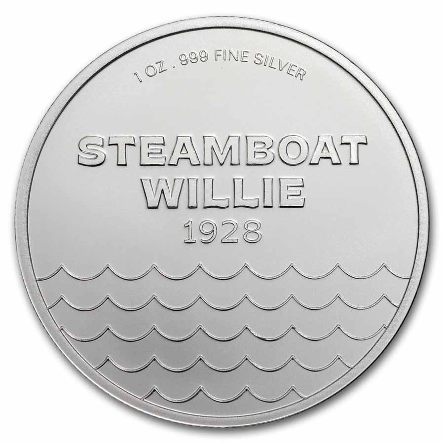 Build your silver holdings in a classic and historic design featuring an iconic moment in animation history. Add these 1 oz Silver Steamboat Willie rounds to your cart today!