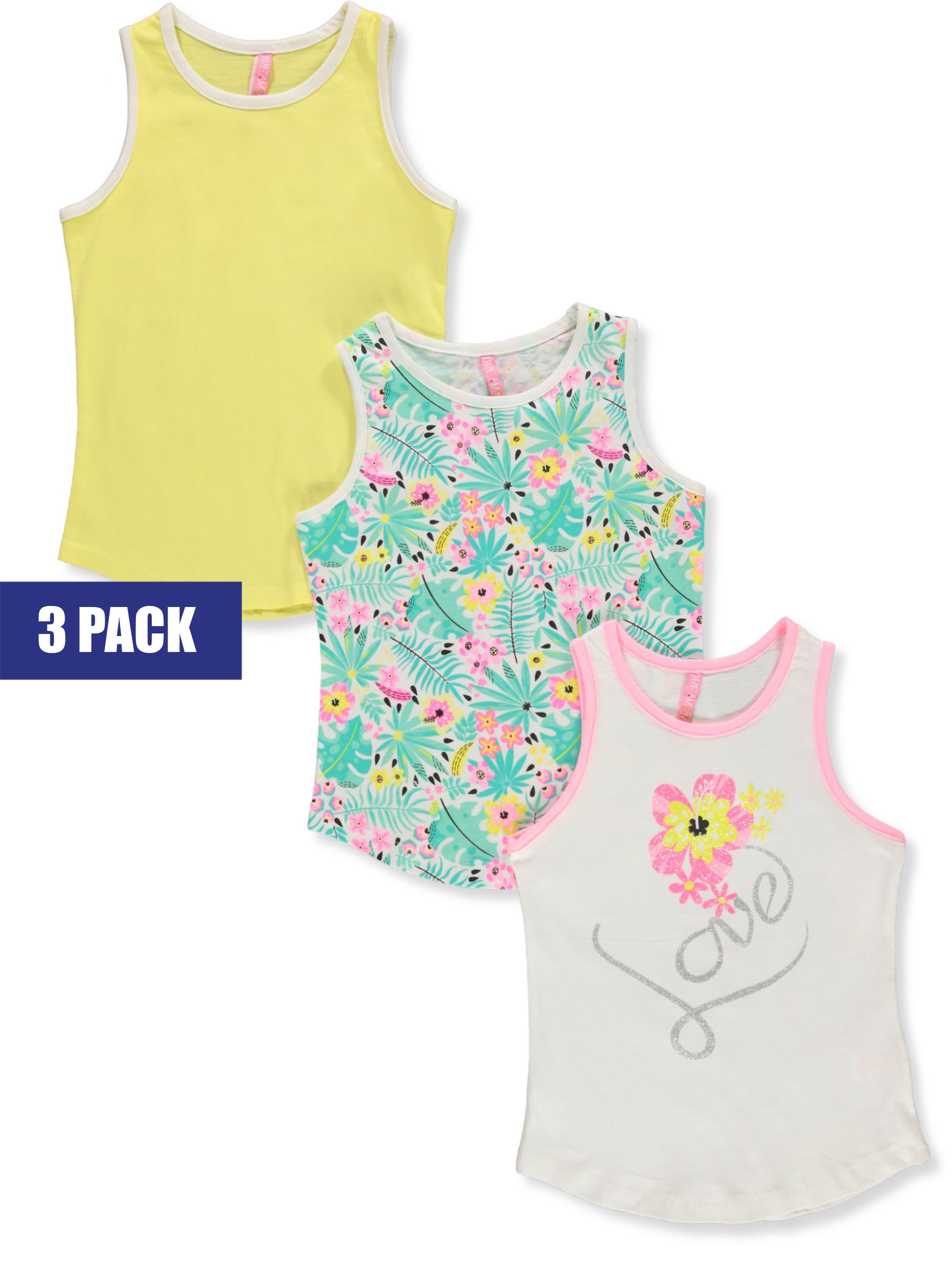 Dreamstar Girls' 3-Pack Butterfly Tank Tops - pink/white, 4
