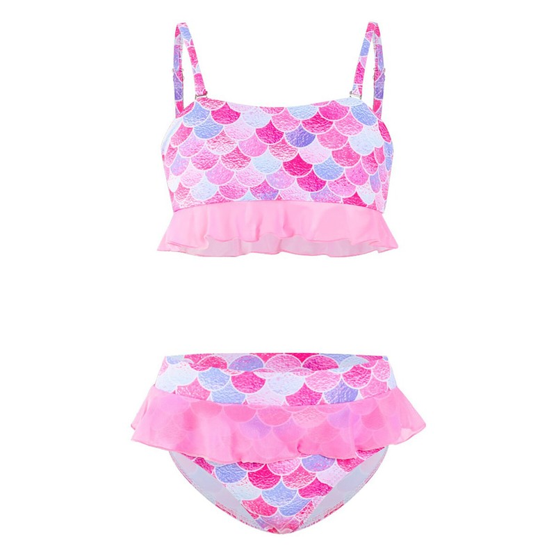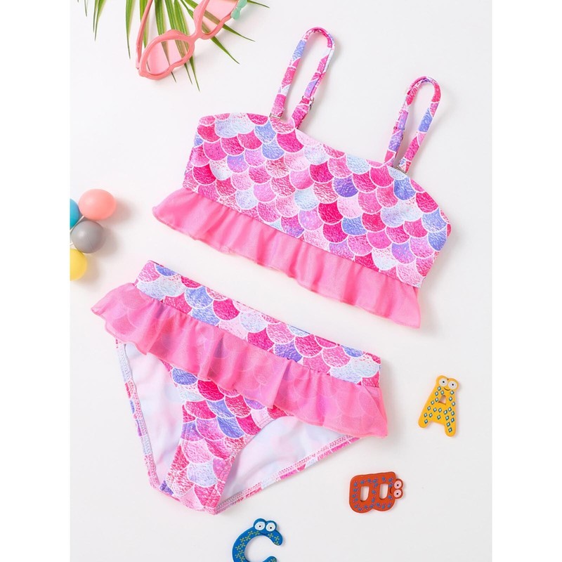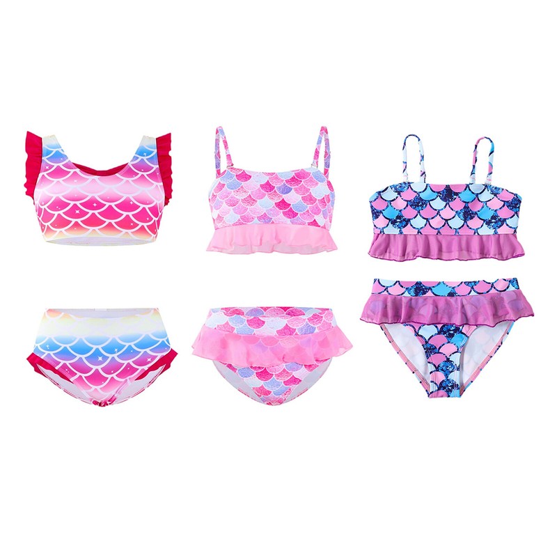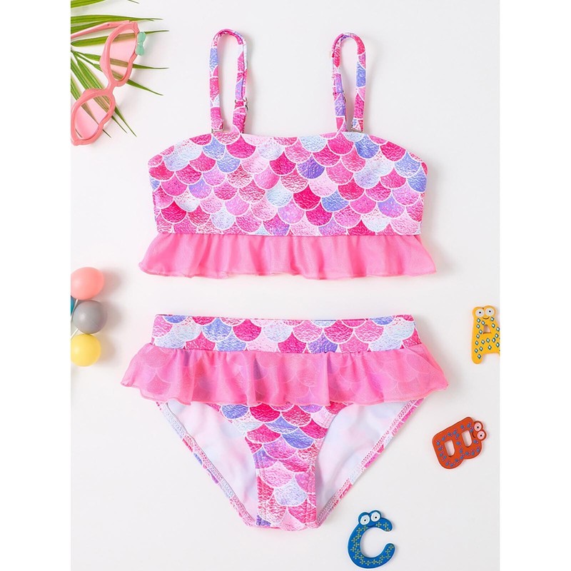 Decorated with ruffle at bottom and waist. Fish scales print makes your little girl look like a mermaid princess.