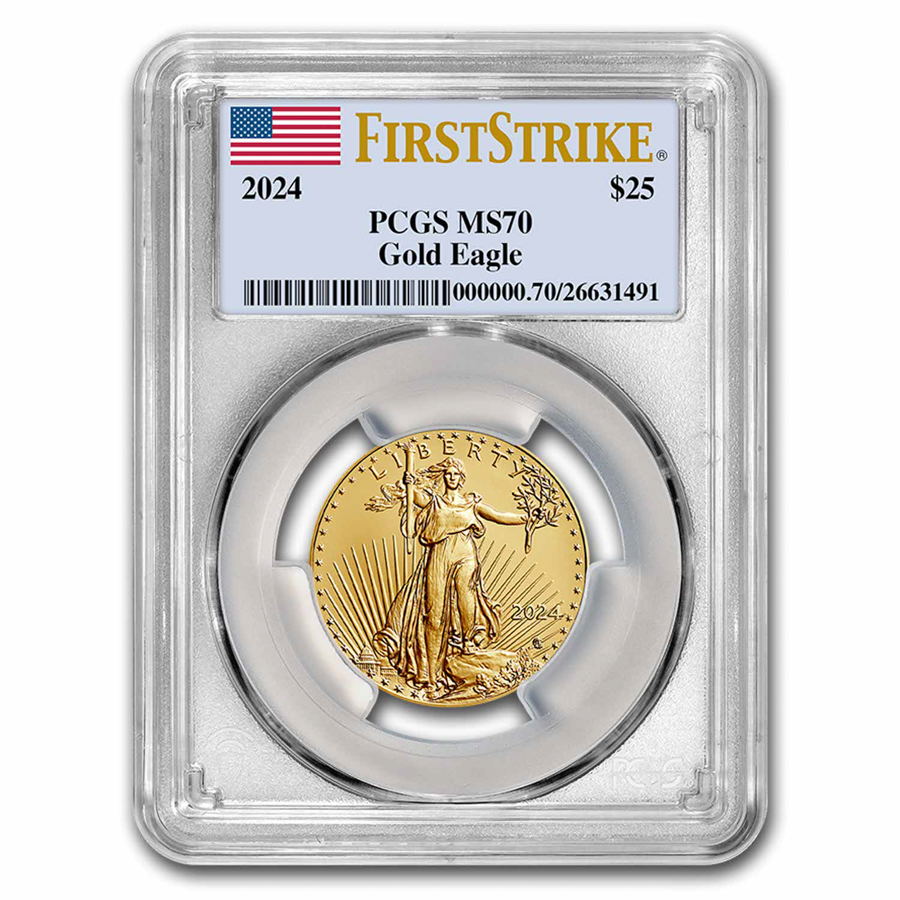 The 1/2 oz American Gold Eagle with FirstStrike® is perfect for investors looking to buy gold bullion in smaller sizes and more affordable increments. Add the PCGS certified MS-70 1/2 oz Gold Eagle to your cart today!