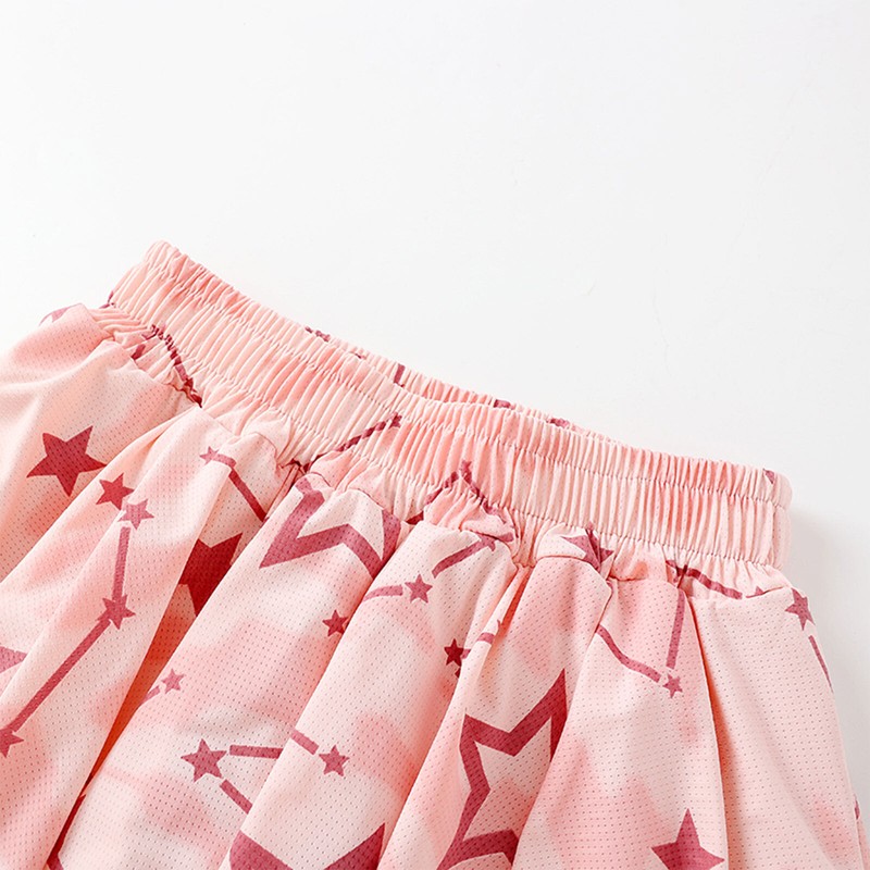 The flowy hems design and elastic inner layer provide greater freedom of movement. Star print makes your girl look more energetic.