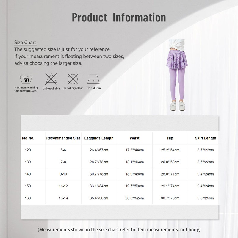| Tag No. | Recommended Size | Leggings Length | Waist | Hip | Skirt Length |