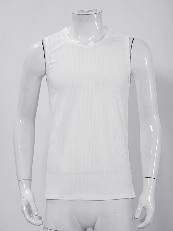 Sleeveless and u neckline, slim fit and see through design, pull on closure.