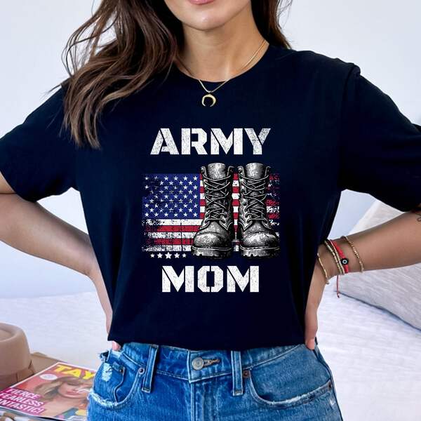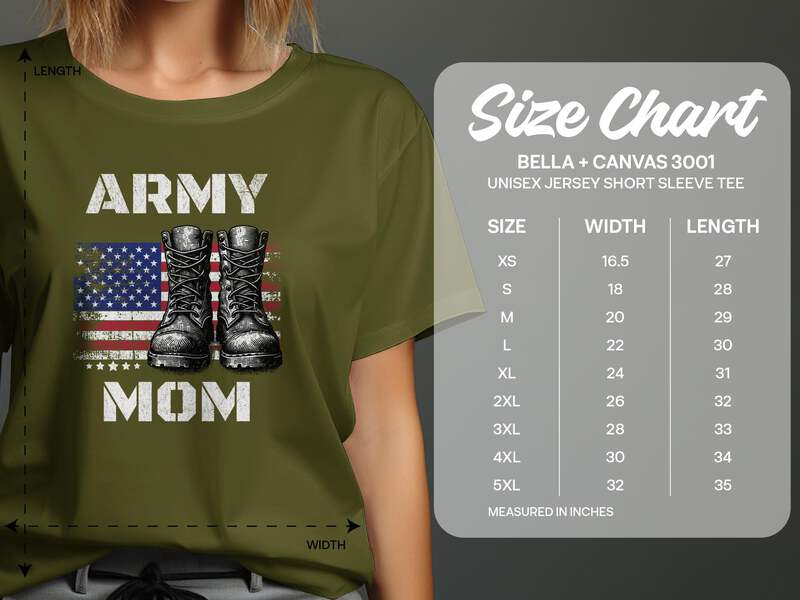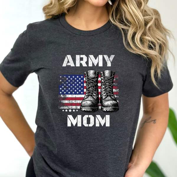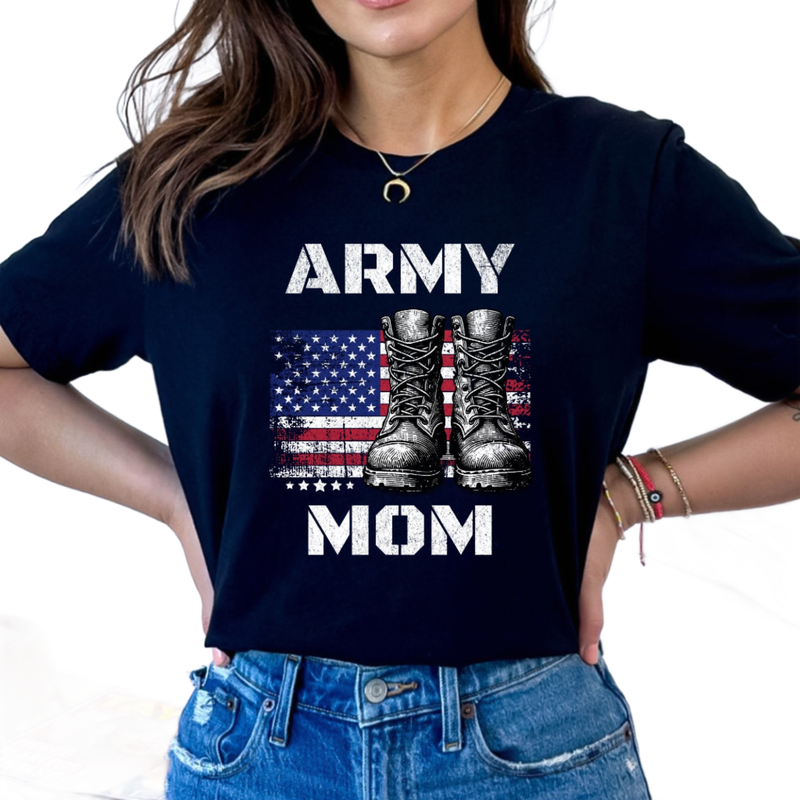 Celebrate your pride and honor as an Army Mom with our custom-designed 'Proud Army Mom' T-shirt. Made from soft, breathable fabric, this t-shirt is not just comfortable but also a powerful statement of support and love for your soldier.