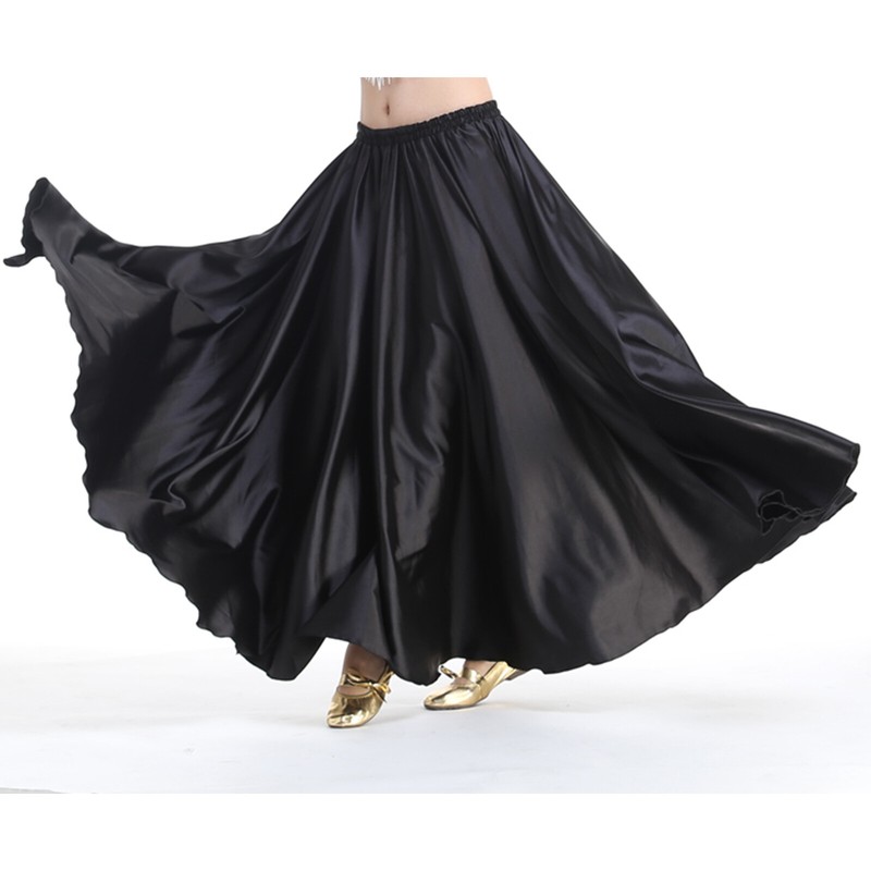 The satin skirt creates nice circles and undulations as you dance and twirl. The satiny skirt will make a great stage effect.
