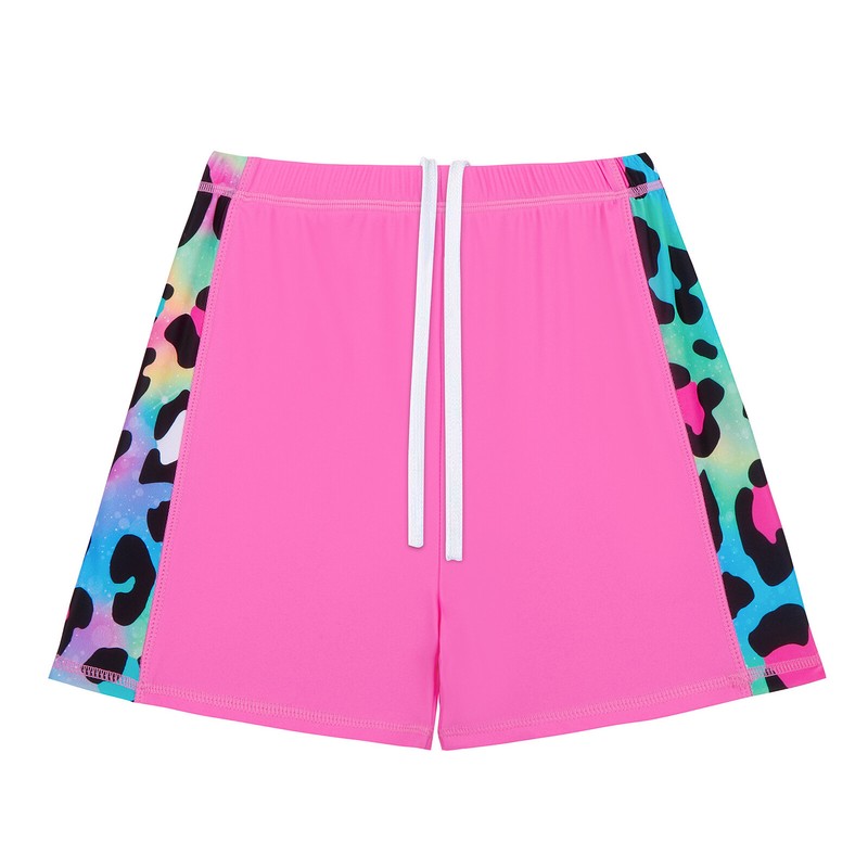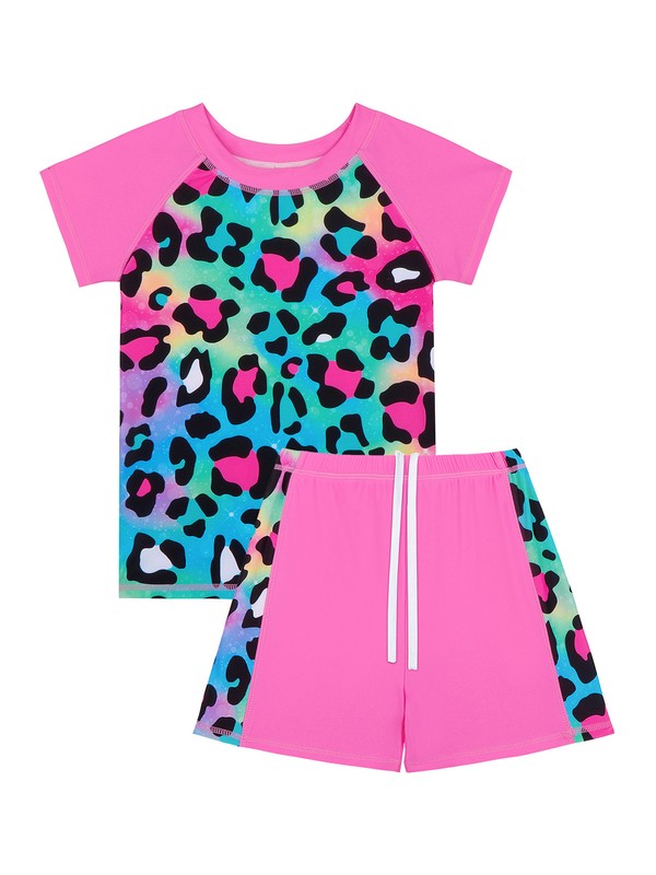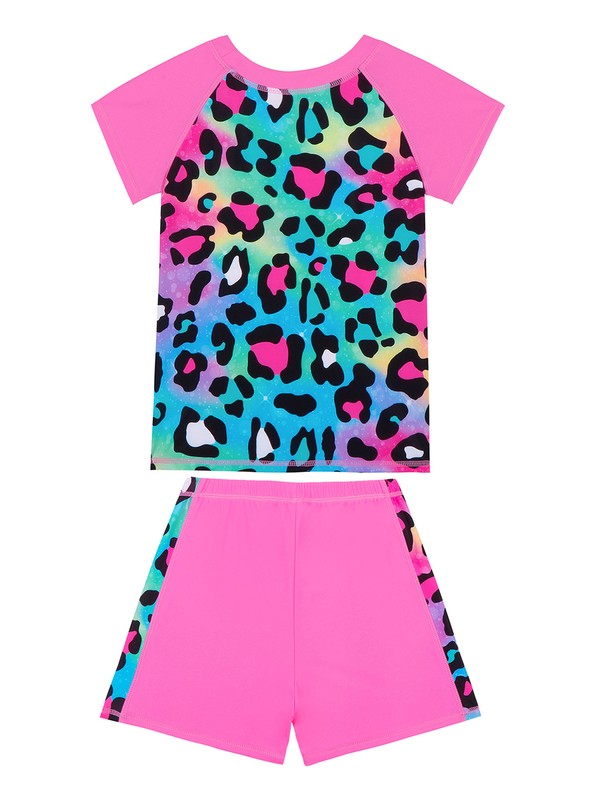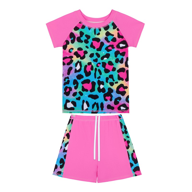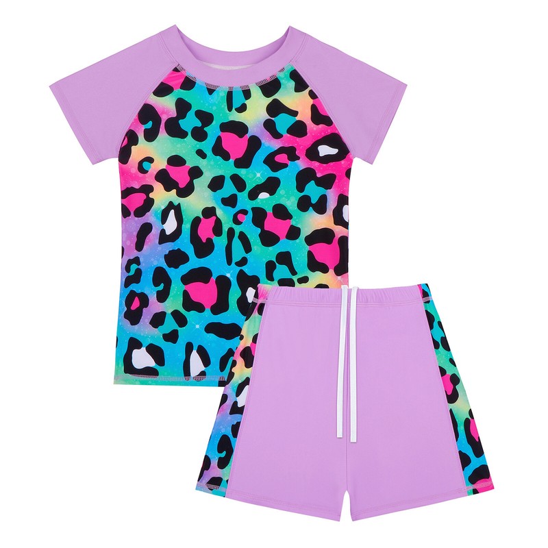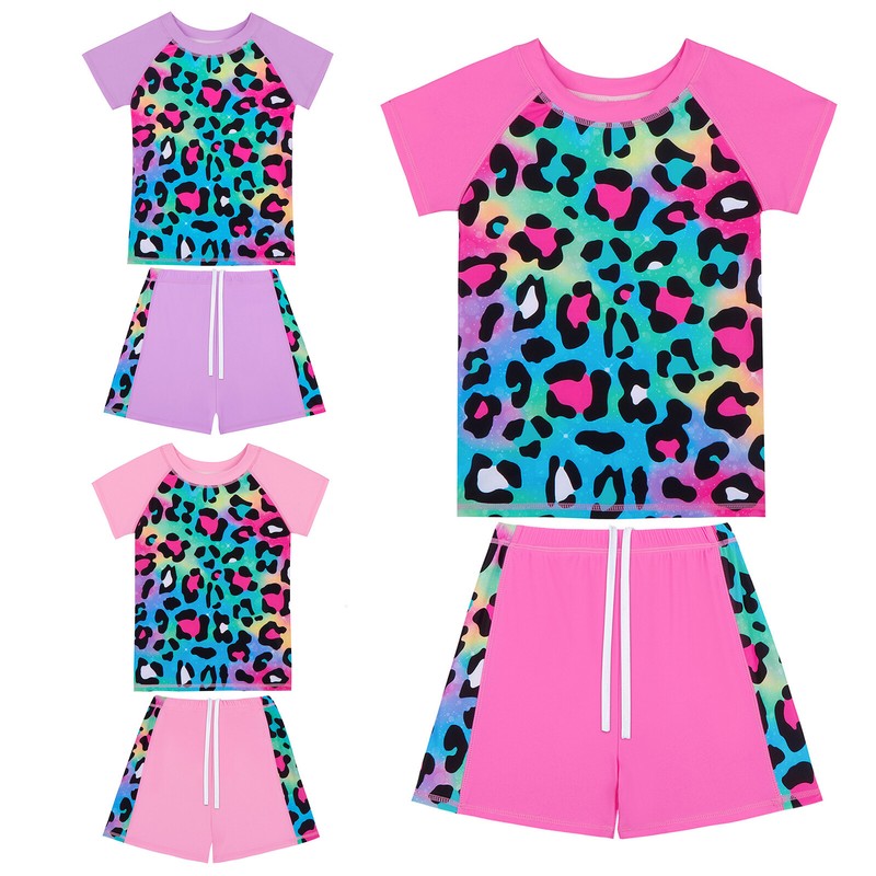 2 piece swim top and shorts for child size, leopard print make girls look more active and beautiful.