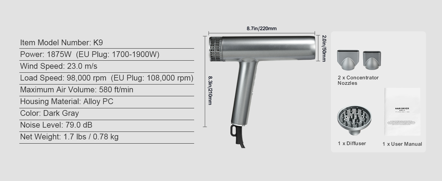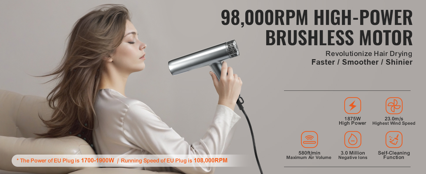 Nourish your hair with 3 million high-concentration negative ions, effectively minimizing static and frizz, and leaving your hair silky smooth. Our negative ions blow dryer locks in moisture, maintaining natural hydration to reduce dryness and damage, ultimately promoting healthy and radiant hair.